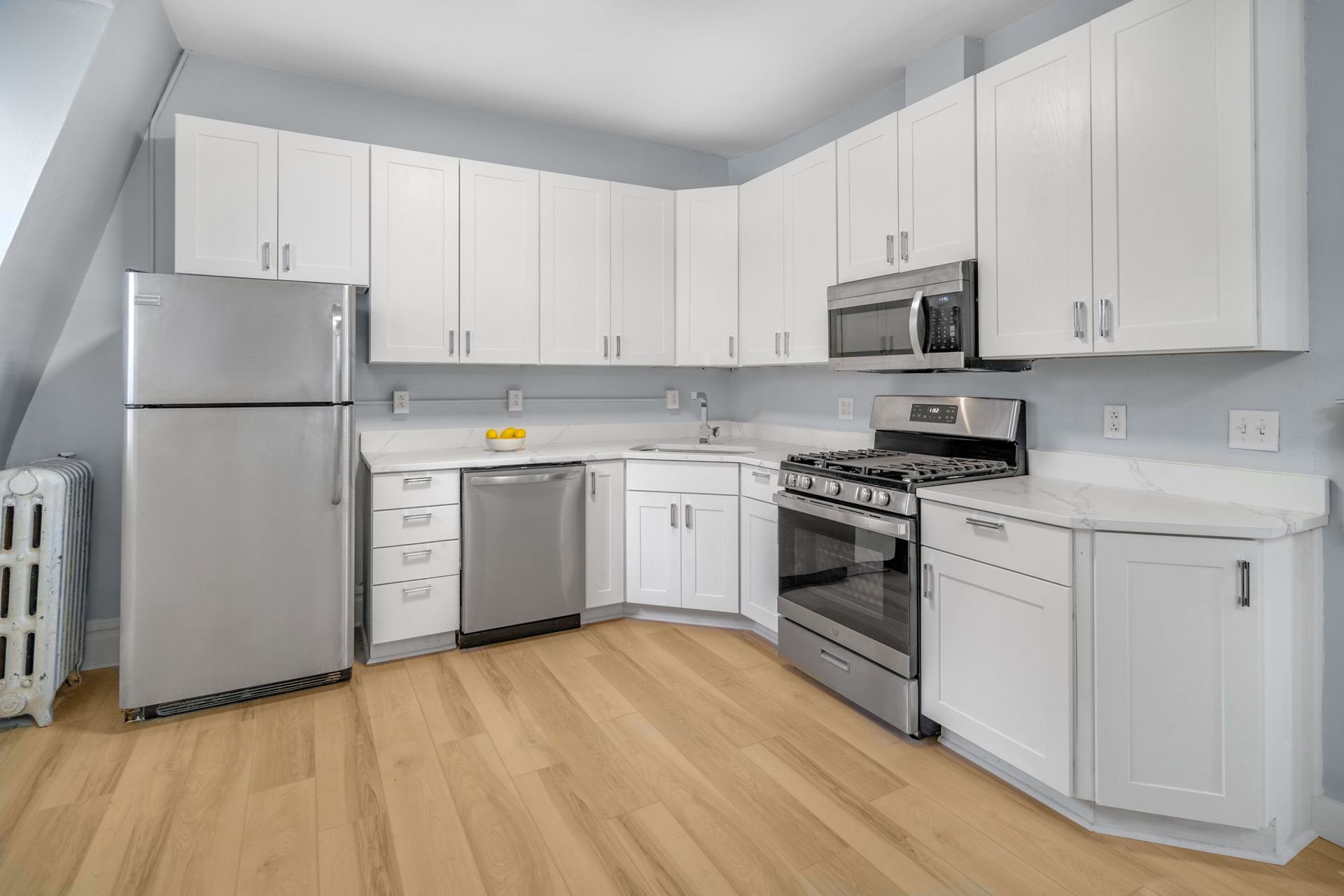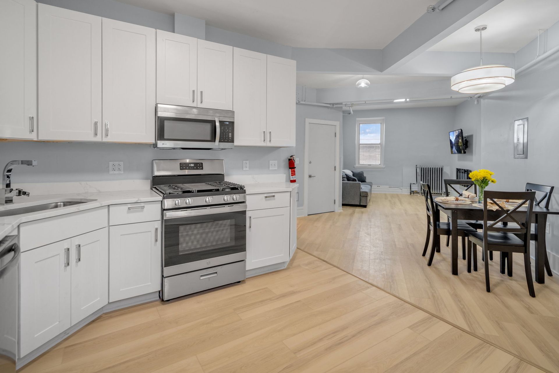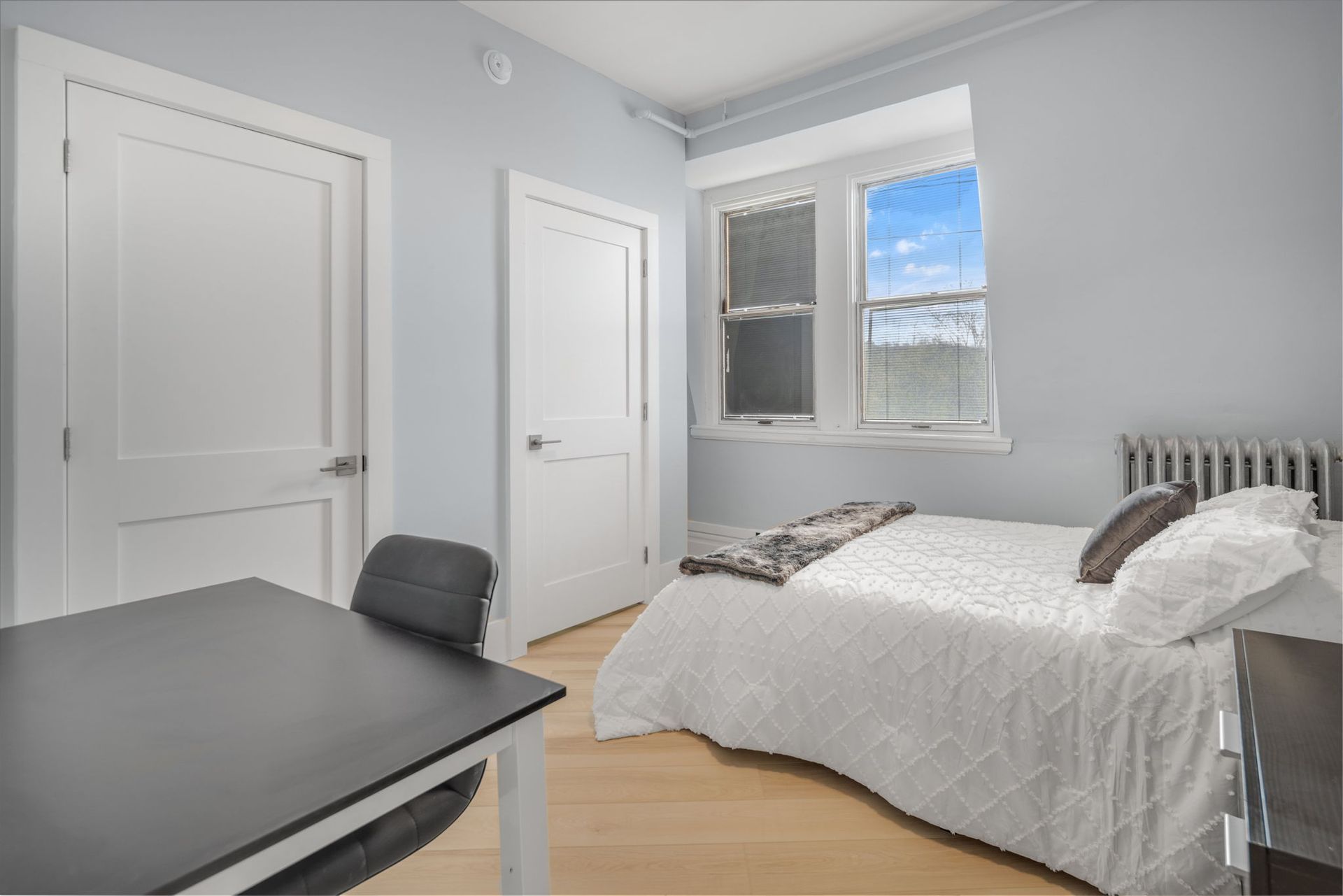 Each apartment comes fully furnished and features all new kitchens, upgraded bathrooms, new flooring and remodeled living and bedroom areas. Enjoy this home's classic charm blended with modern amenities like custom tile baths, LED vanity mirrors, smart lights and digital door access. The kitchens feature a full suite of new stainless steel appliances, wood cabinets, and quartz countertops. Common areas feature new furnishings including wall-mounted flat screen TVs and space for living and dining accordingly. Additional Furnishings include a couch, dining room table and chairs or kitchen counter seating, full size bed frame and mattress, desks and desk chair, and closet and dressers or large armoire in each bedroom.
