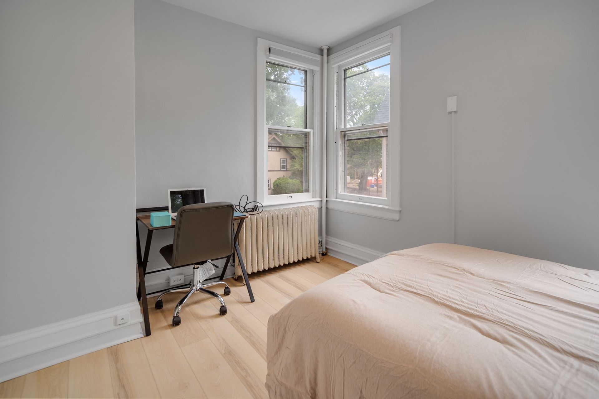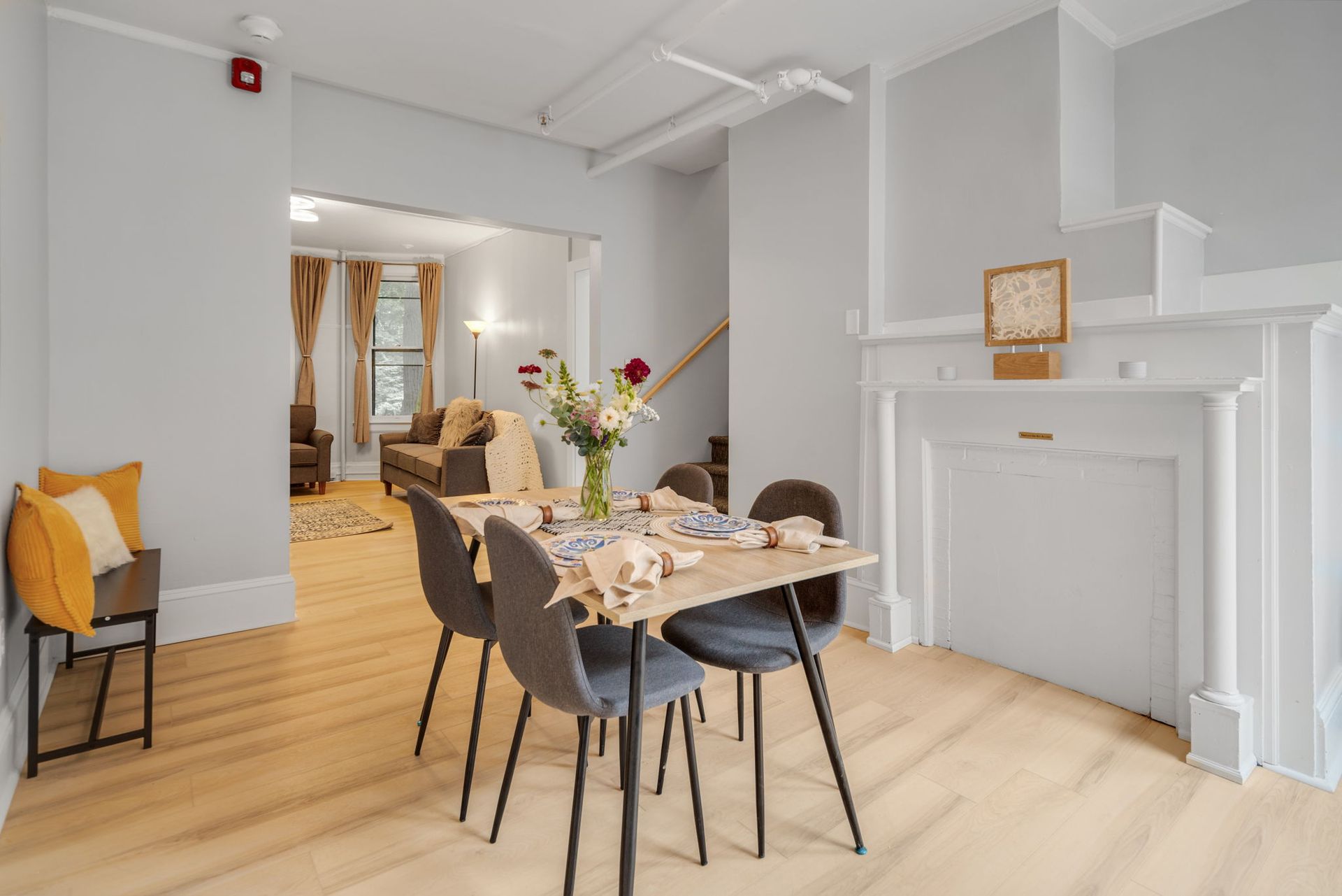 Each apartment comes fully furnished and features all new kitchens, upgraded bathrooms, new flooring and remodeled living and bedroom areas. Enjoy this home's classic charm blended with modern amenities like custom tile baths, LED vanity mirrors, and tasteful lighting. The kitchens feature a full suite of new stainless steel appliances, wood cabinets, and quartz countertops. Common areas feature new furnishings including wall-mounted flat screen TVs and space for living and dining accordingly. Additional Furnishings include a couch, dining room table and chairs or kitchen counter seating, full size bed frame and mattress, desks and desk chair, and closet and dressers or large armoire in each bedroom.