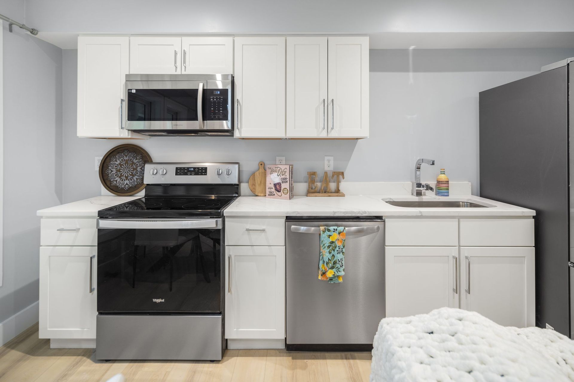 Each apartment comes fully furnished and features all new kitchens, upgraded bathrooms, new flooring and remodeled living and bedroom areas. Enjoy this home's classic charm blended with modern amenities like custom tile baths, LED vanity mirrors, smart lights and digital door access. The kitchens feature a full suite of new stainless steel appliances, wood cabinets, and quartz countertops. Common areas feature new furnishings including wall-mounted flat screen TVs and space for living and dining accordingly. Additional Furnishings include a couch, dining room table and chairs or kitchen counter seating, full size bed frame and mattress, desks and desk chair, and closet and dressers or large armoire in each bedroom.