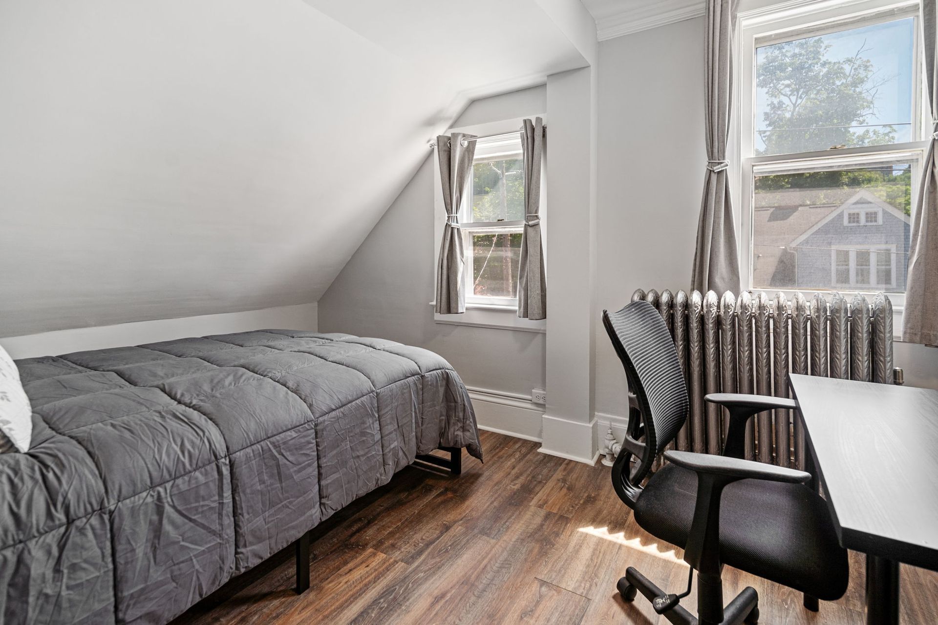 This 13 bedroom, 4 bathroom, 4 story, multi-family home was renovated in 2024. This unit boasts large open living/dining area, spacious kitchen and four large bedrooms each with ample closet space. This unit also has an additional study/storage room. This property features washer/dryer on site (not in unit) and is available fully furnished with a couch, dining table, beds, dressers, desks and desk chairs.