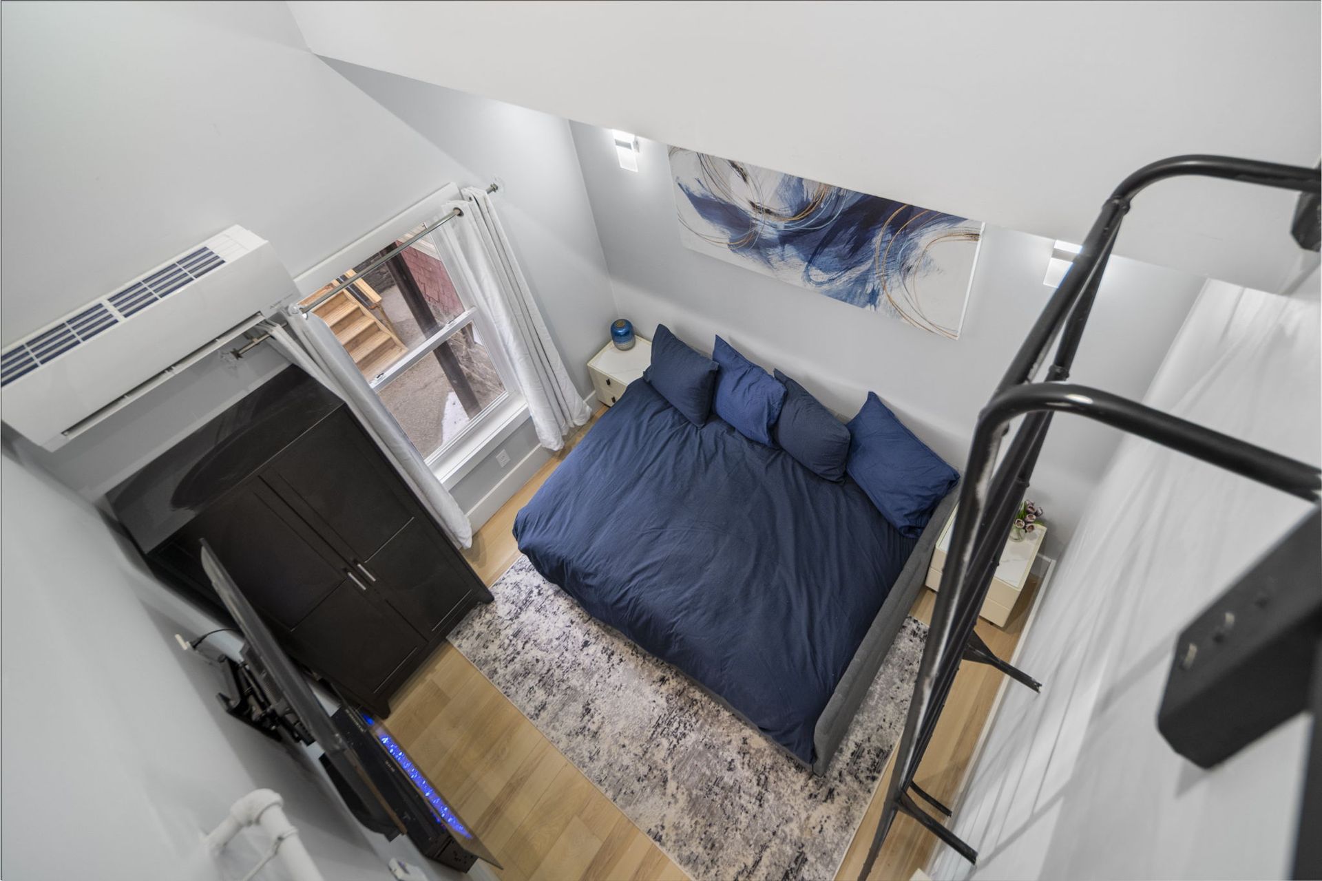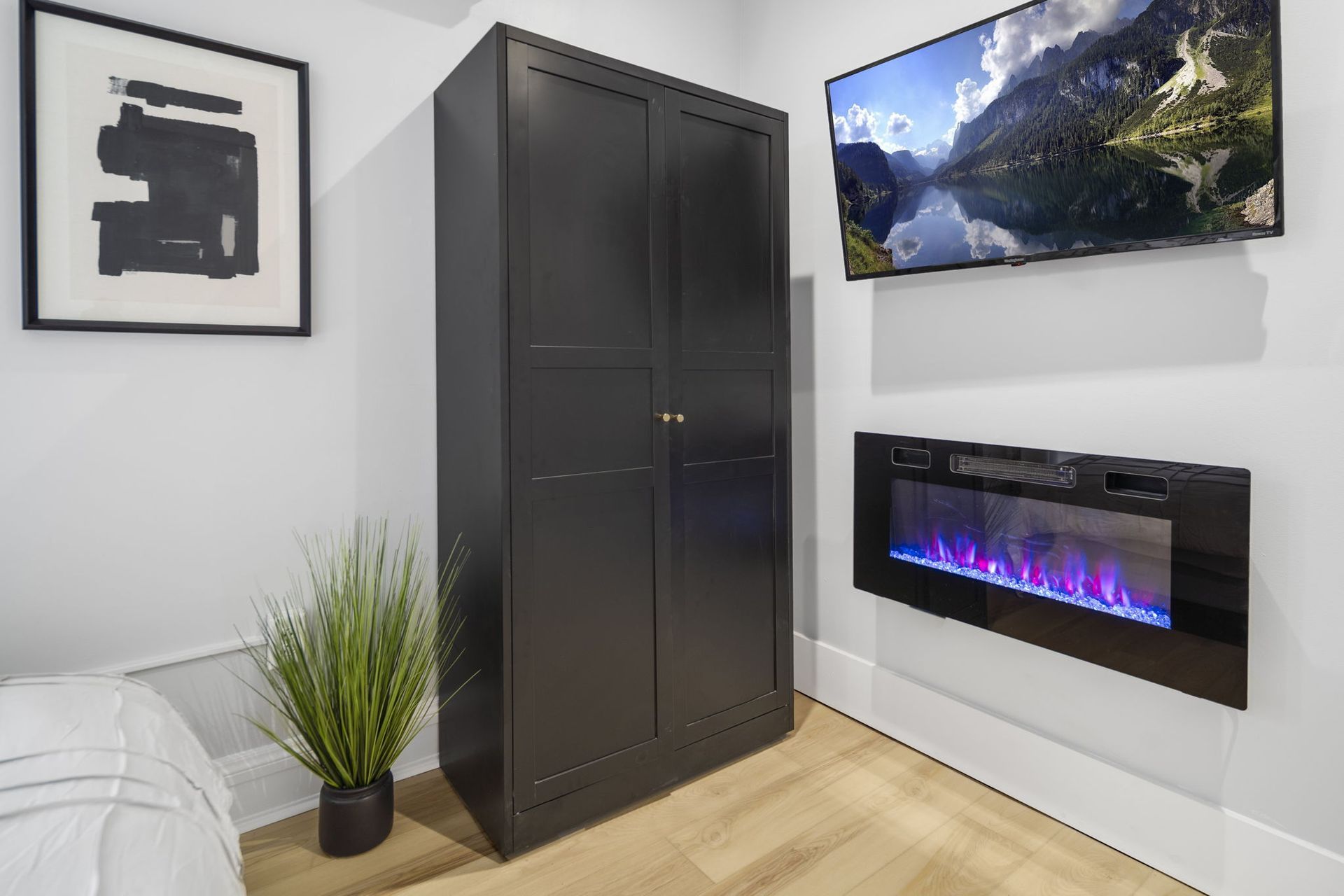 Both bedrooms are furnished with premium memory foam mattresses on full-size beds, and each comes with an LED fireplace and Smart TV. The secondary bedroom includes a pull-out trundle bed and a cozy lofted reading nook, perfect for relaxation.