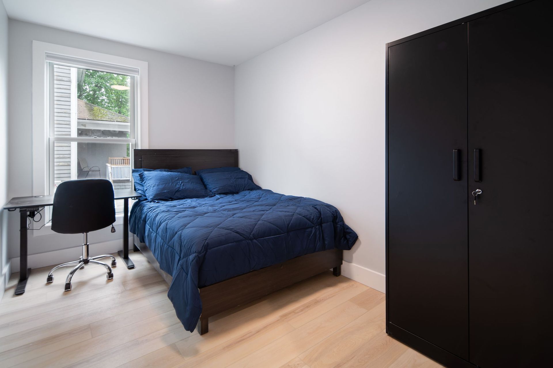 All bedrooms are furnished with premium memory foam mattresses on full-size bed frames. Each comes with an Armoire or Closet, desk and task chair.