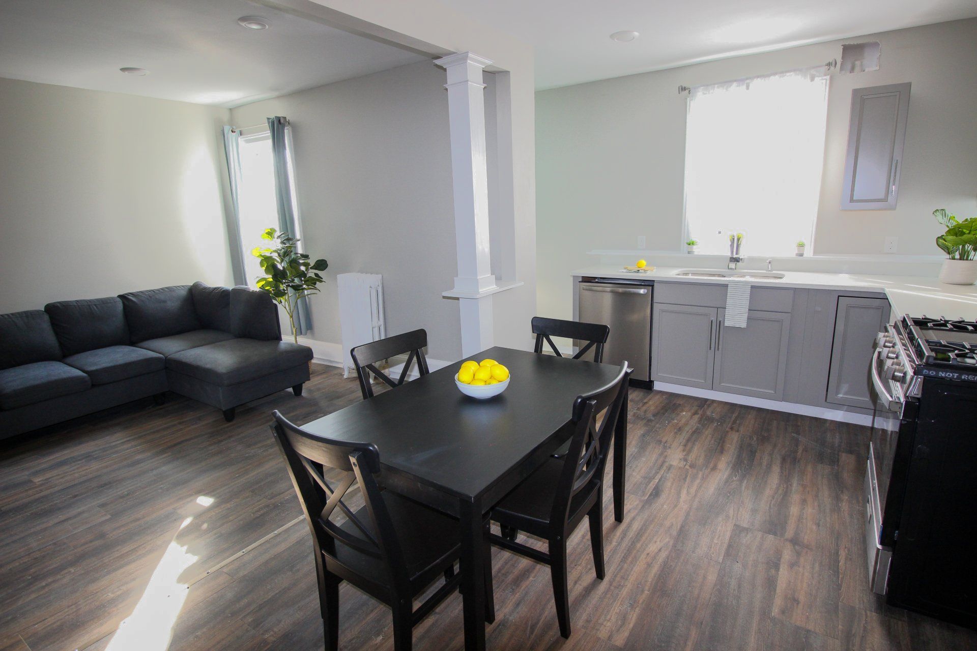 This 3-bedroom apartment was extensively renovated in the summer of 2021. Major renovations include all new flooring, furnishings, and contemporary finishes. Enjoy modern amenities like in-unit laundry and stylish new lighting fixtures. The updated kitchen features quartz countertops and new stainless steel appliances. The bathroom has a new vanity, custom tiling, and touch-activated LED mirror.