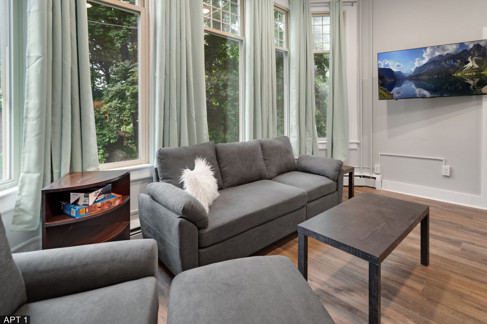 This charming 14 bedroom, four story historical multi-family home was renovated in 2023. There are four apartments each occupying one floor of the building. All units feature Quartz countertops, hardwood cabinets, stainless steel appliances, new flooring and well appointed bathrooms. A shared laundry is available in the basement.