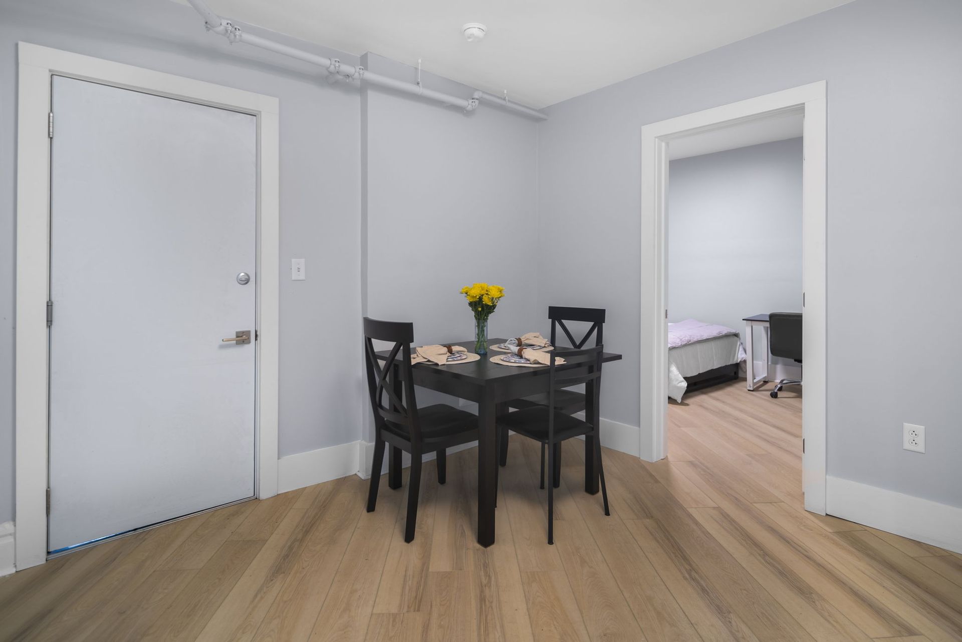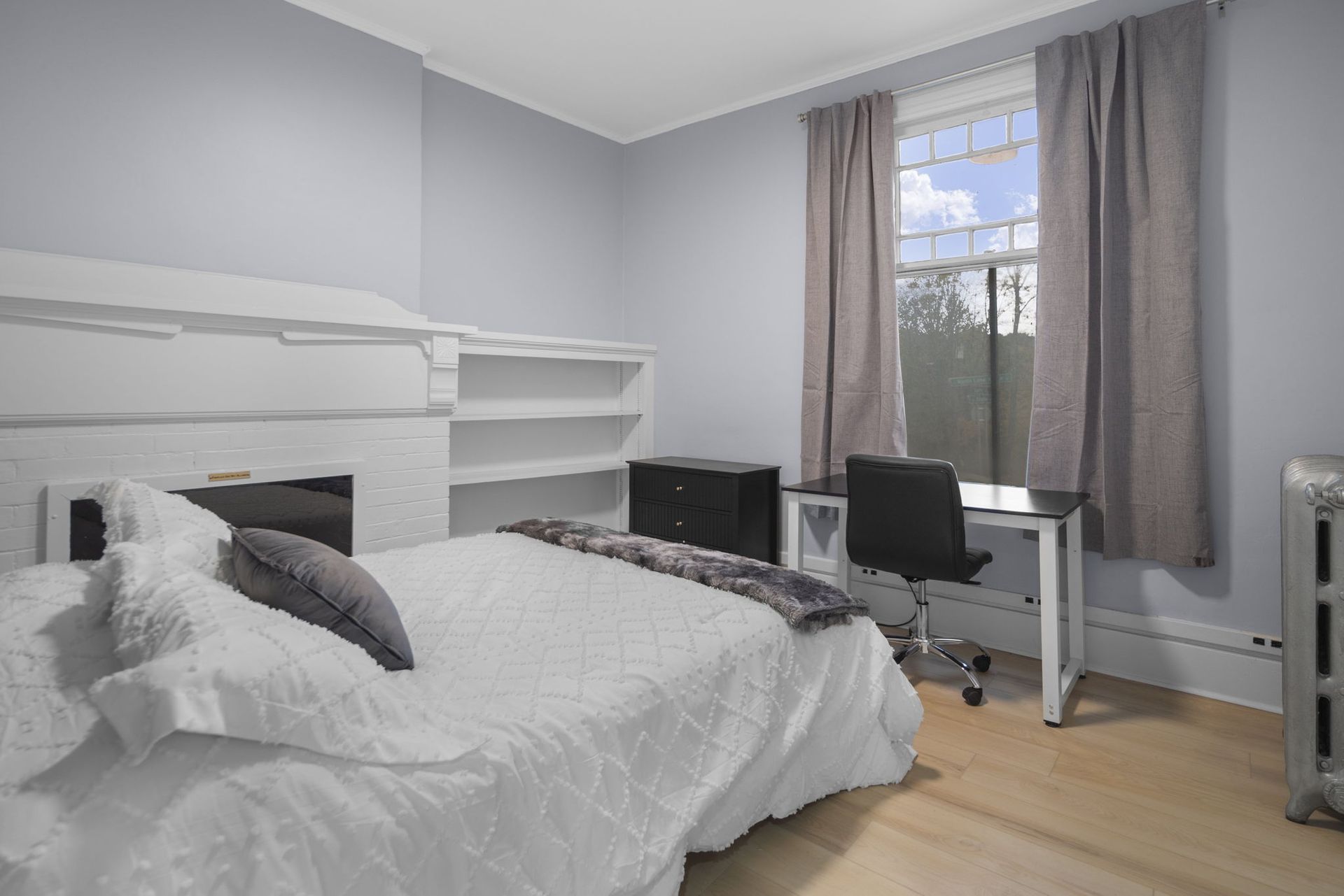 Each apartment comes fully furnished and features all new kitchens, upgraded bathrooms, new flooring and remodeled living and bedroom areas. Enjoy this home's classic charm blended with modern amenities like custom tile baths, LED vanity mirrors, smart lights and digital door access. The kitchens feature a full suite of new stainless steel appliances, wood cabinets, and quartz countertops. Common areas feature new furnishings including wall-mounted flat screen TVs and space for living and dining accordingly. Additional Furnishings include a couch, dining room table and chairs or kitchen counter seating, full size bed frame and mattress, desks and desk chair, and closet and dressers or large armoire in each bedroom.
