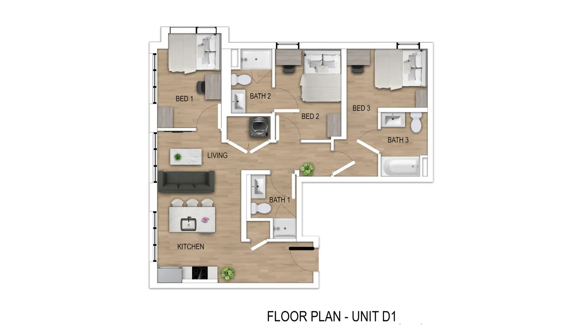 Our spacious 3 bedroom apartments are designed for comfort, flexibility, and modern living. Perfect for roommates or students who want extra space, each bedroom offers generous closet storage, natural light, and a private retreat for studying or relaxing.