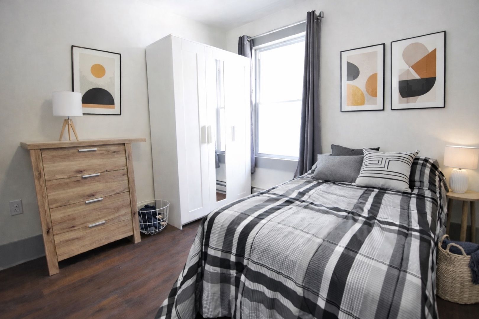 The apartment comes with a washer, dryer, dishwasher, the home comes fully furnished, with a full-size bed, desk, desk chair and dresser in all 8 bedrooms. The living room has a sectional along with dining table and chairs.
