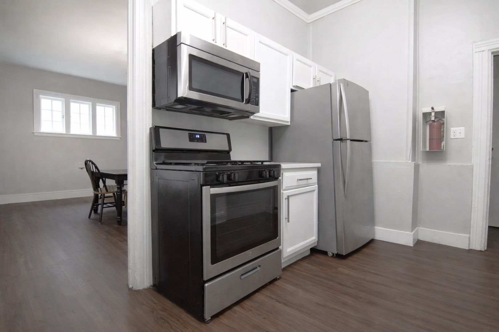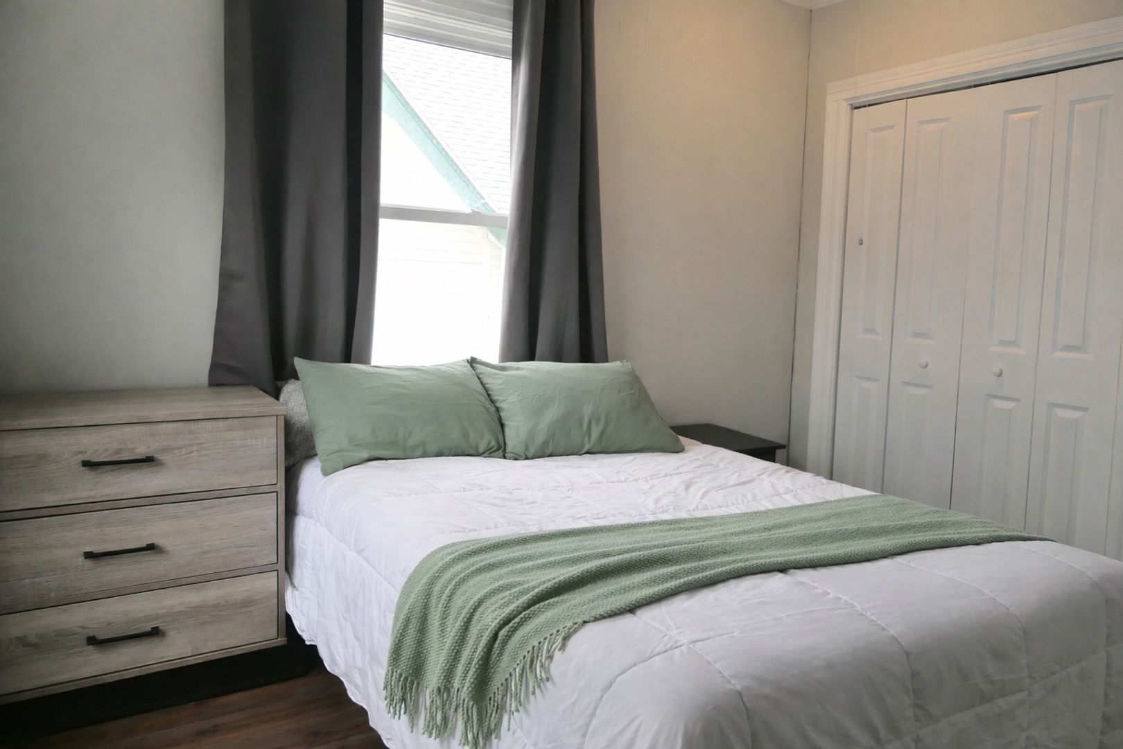 In 2019 this building was renovated to include stainless steel appliances, granite countertops/breakfast bar, and LED lighting. The living area features a mantle and electric fireplace and opens into an adjoining dining room to offer an impressive space to gather and entertain. The apartment has two full bathrooms with beautiful new tile flooring as well as luxury vinyl tiling throughout the home. The unit is equipped with a dishwasher and its own laundry system. This unit is available fully furnished with a couch, dining table, beds, dressers, desks, desk chairs, and window treatments.