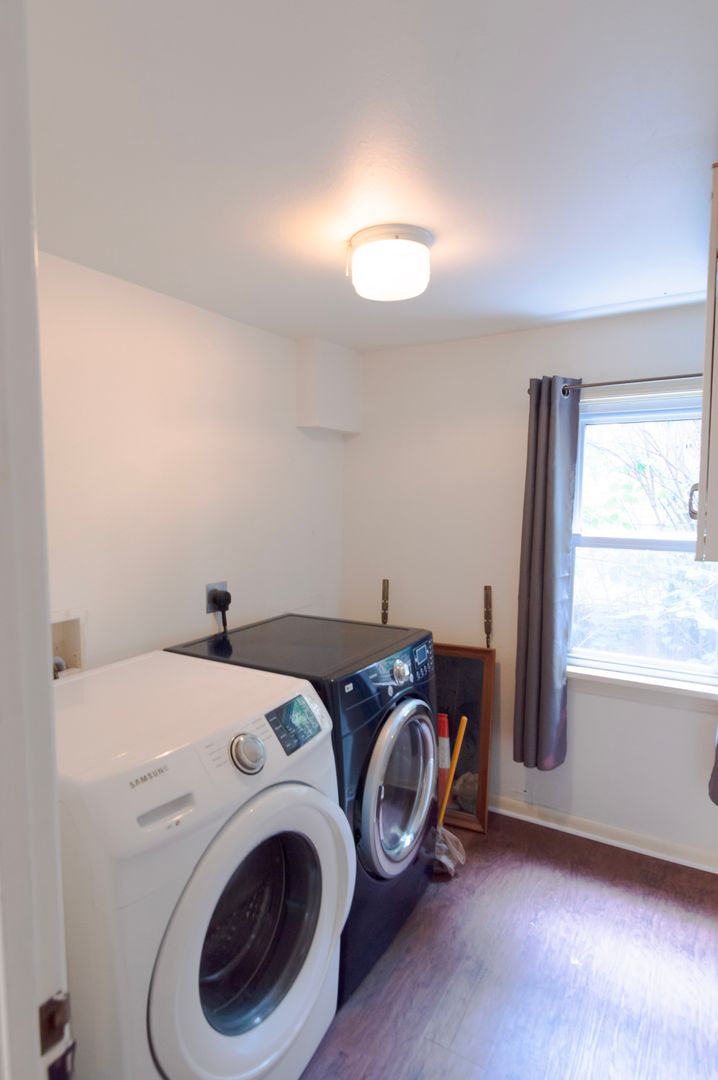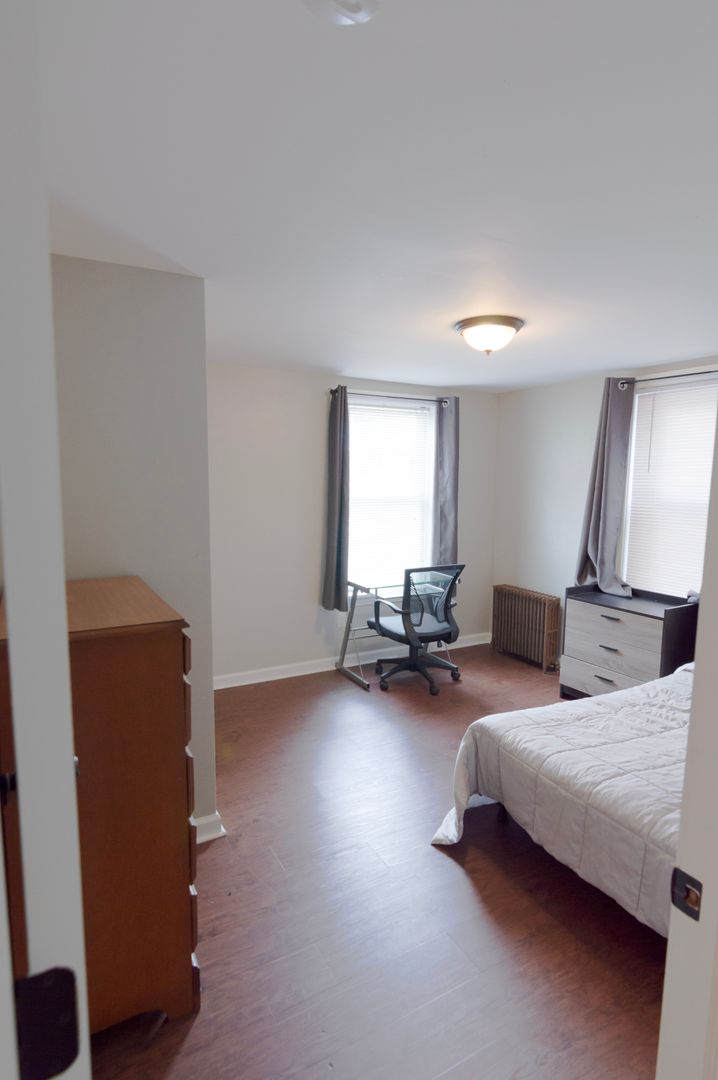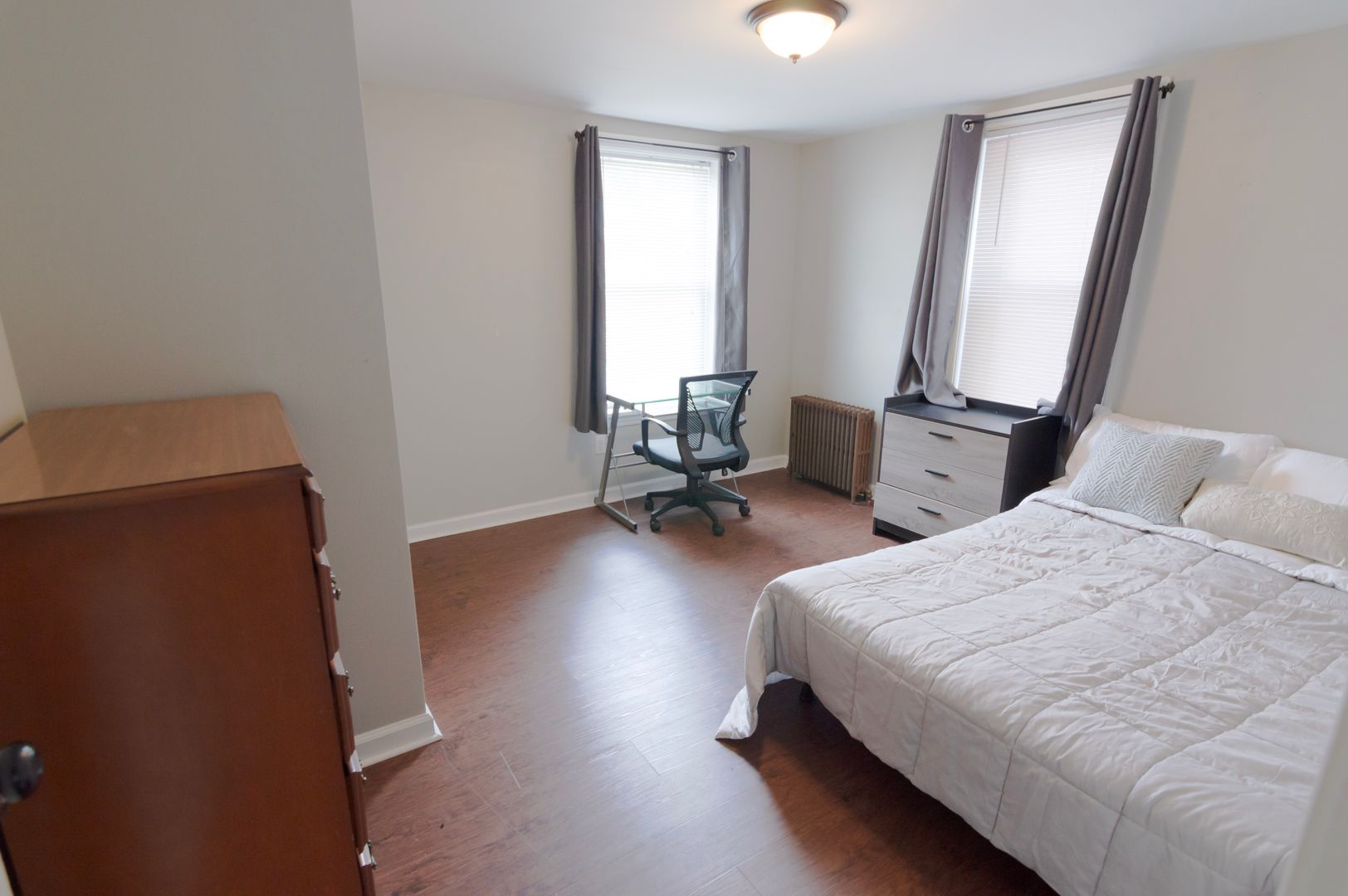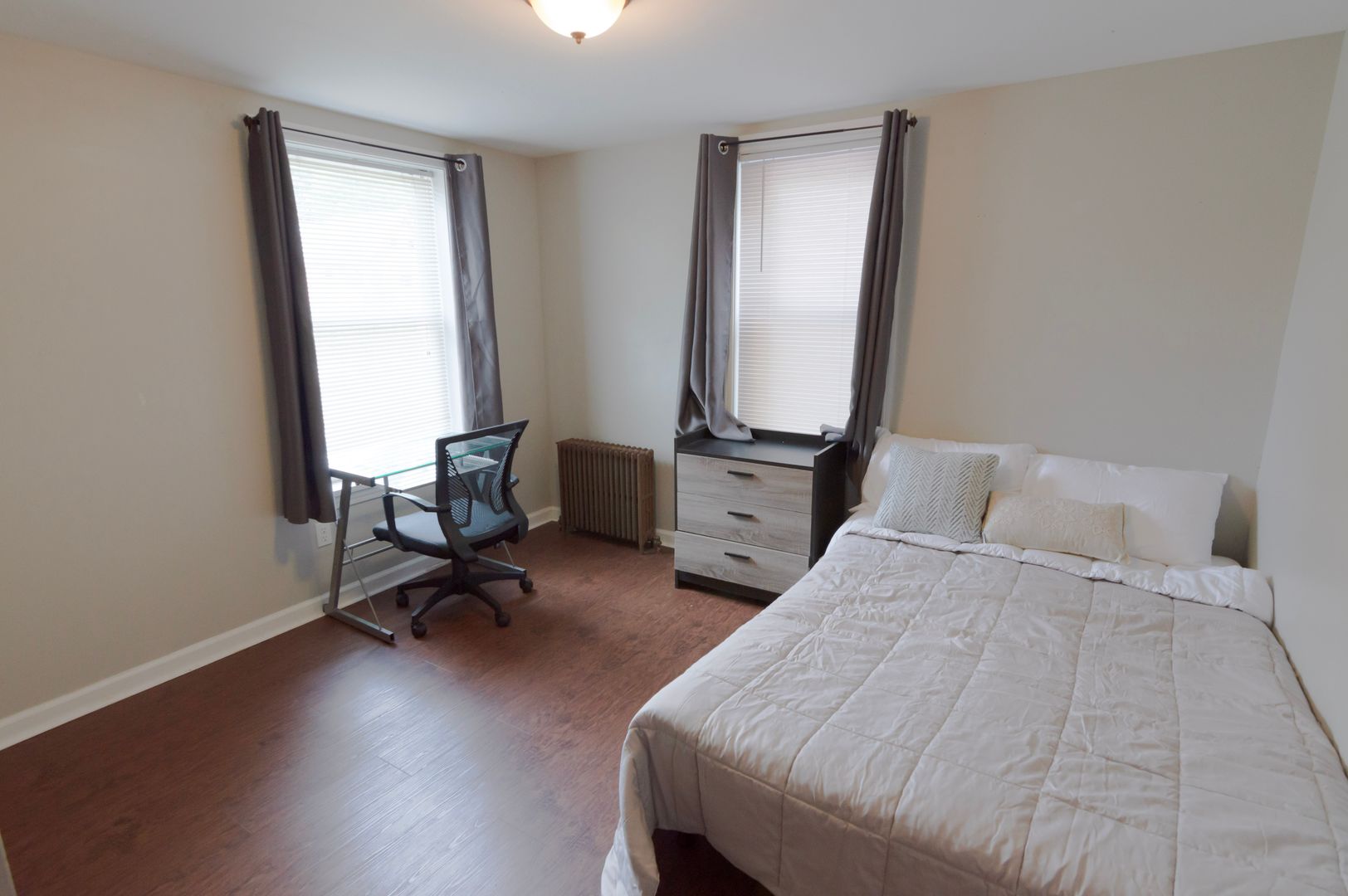 This apartment is the first floor of an up/down duplex and was newly renovated in 2018. There are 3 bedrooms and 2 full bathrooms on each floor. The home features modern finishes like luxury vinyl tiling, stainless steel appliances, and large windows. In the kitchen there are new granite countertops and a dishwasher. The bathrooms are custom-tiled and there is free laundry in the unit.
