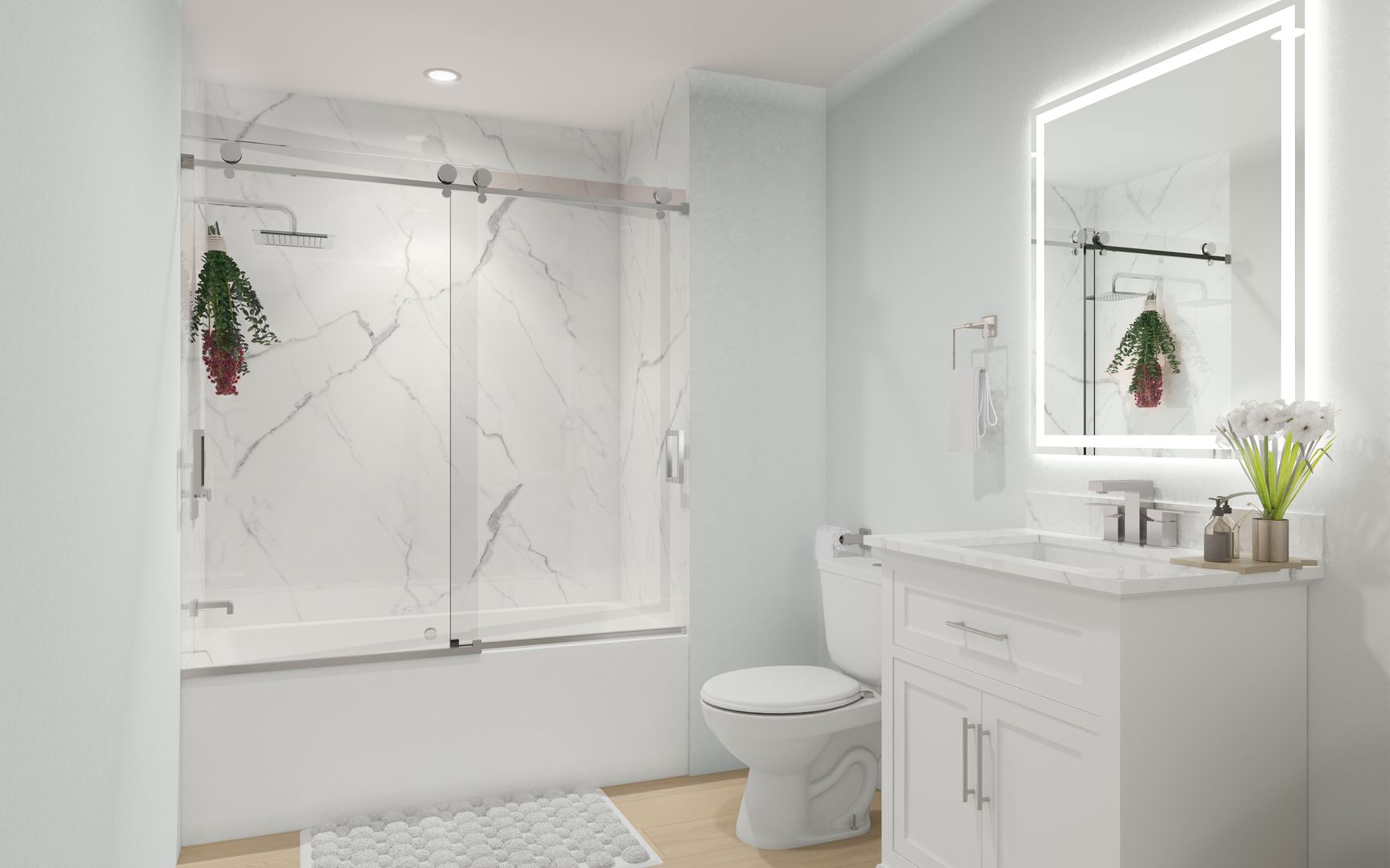 Each apartment is fully furnished and thoughtfully designed to feel clean, modern, and easy to live in from day one. In the studio units, you’ll find details that make a real difference, from the ambient LED fireplace and mounted smart TV to a sleek kitchen with stainless steel appliances and quartz countertops. The space is finished with new flooring, updated furnishings, and a spa-style bathroom complete with a glass shower and LED mirror. Select units also feature Juliet balconies with views of the gorge and Collegetown.