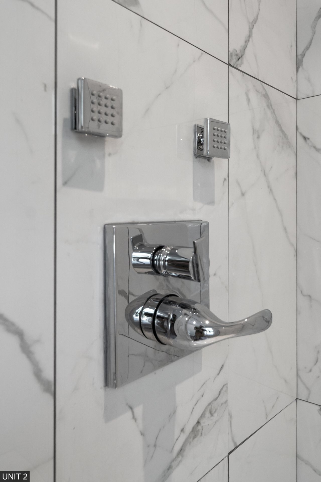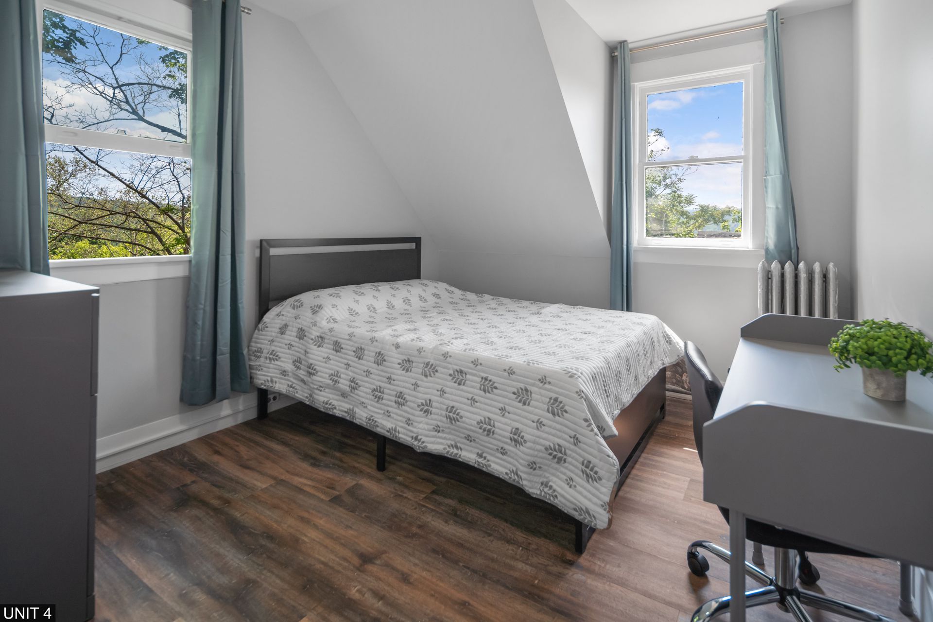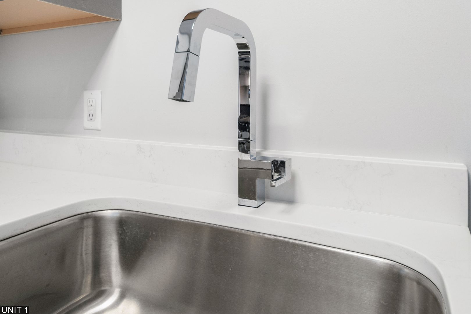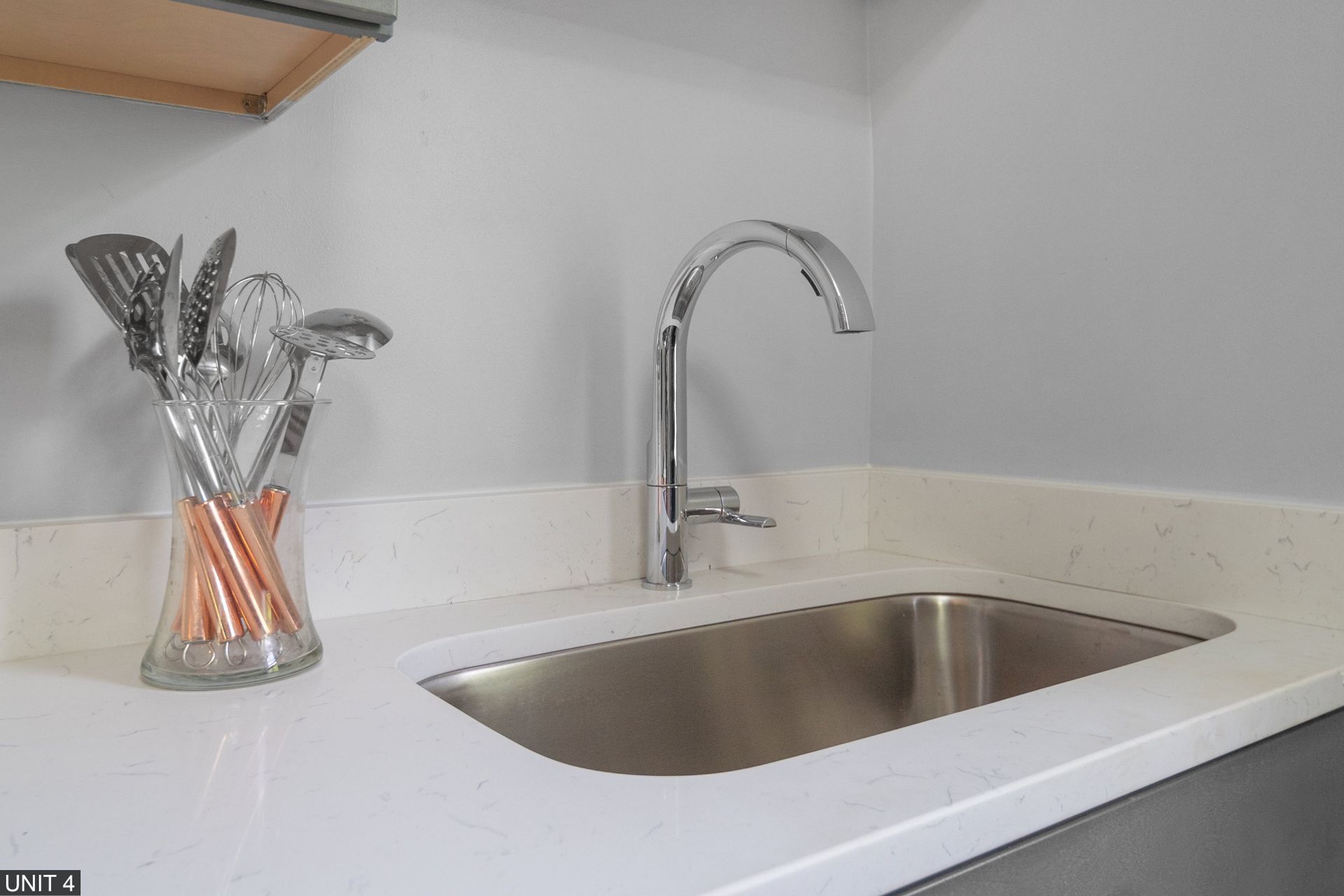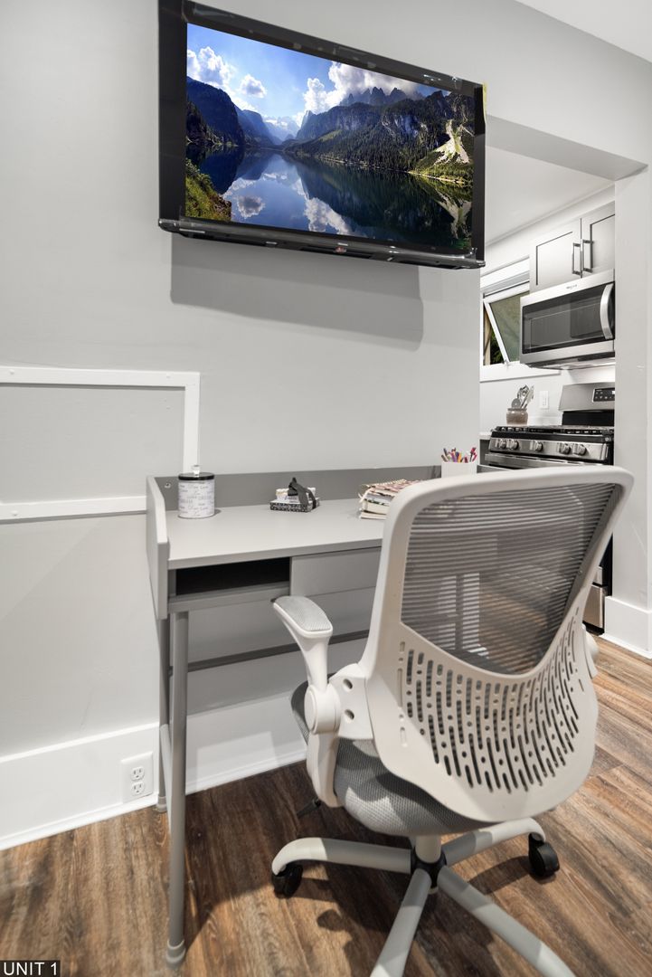 The studio features an open layout with bathroom and kitchenette, perfect for simple meals and study nights. All appliances and furnishings included. New laminate flooring, bluetooth mirror, body sprayers in custom tiled shower, stainless steel appliances, flat screen wall mounted tv.