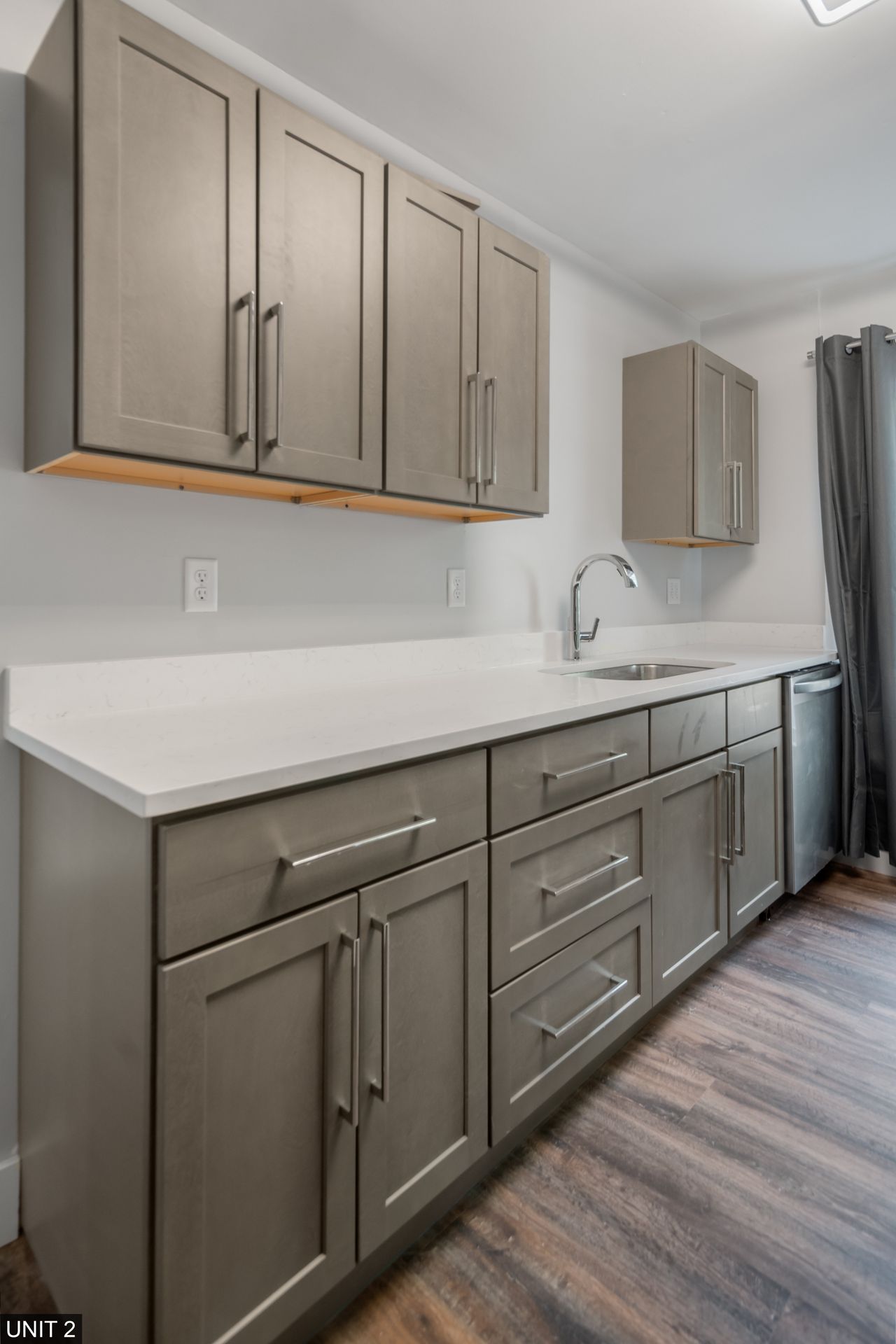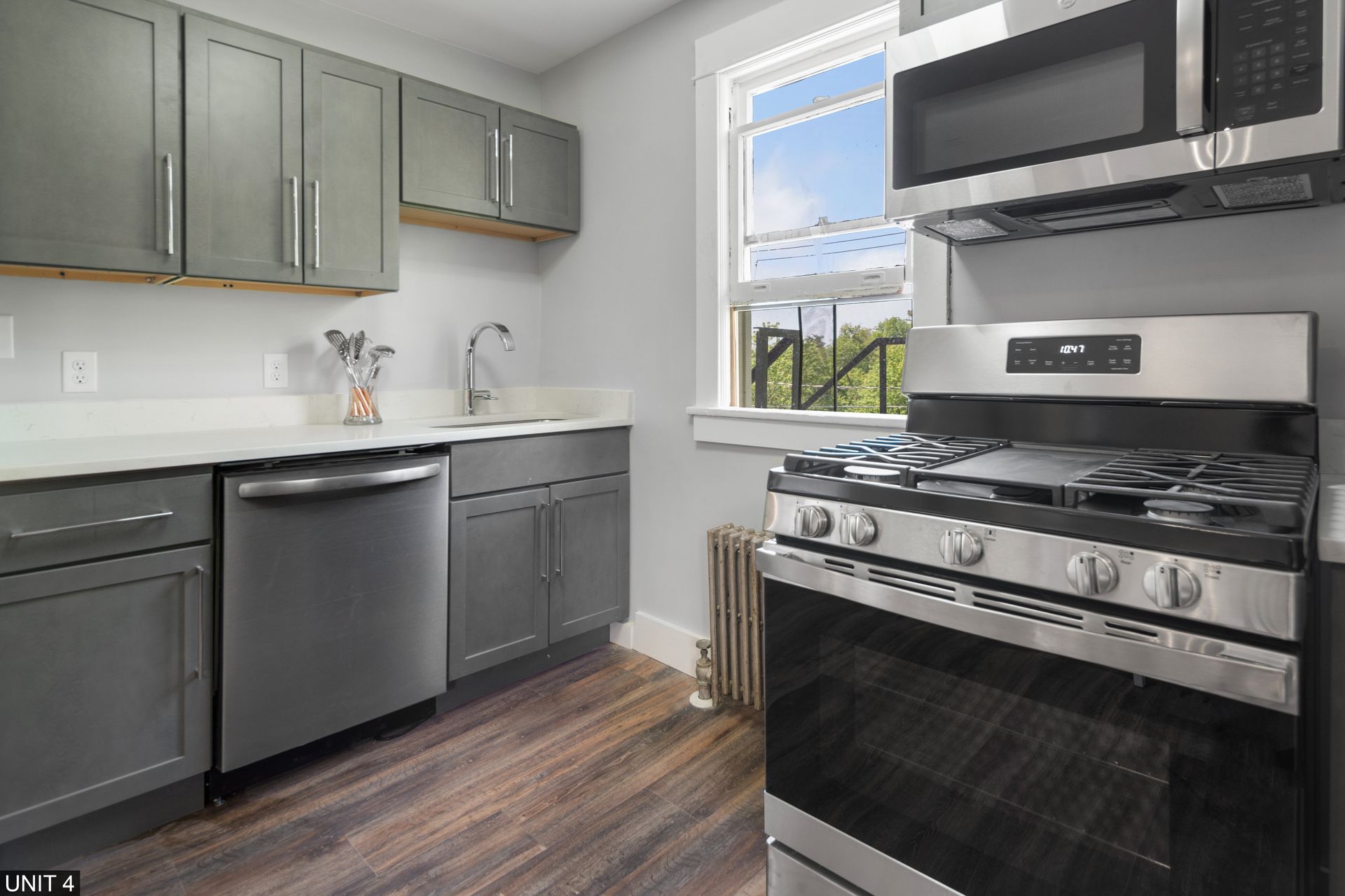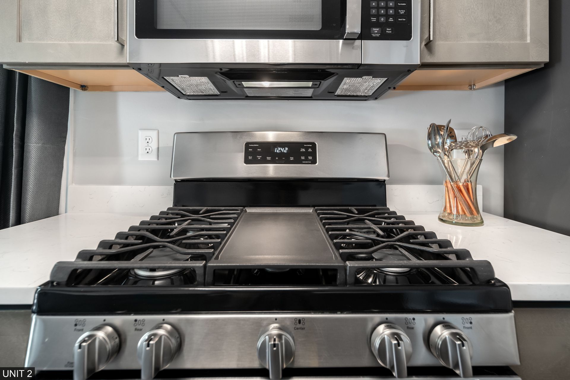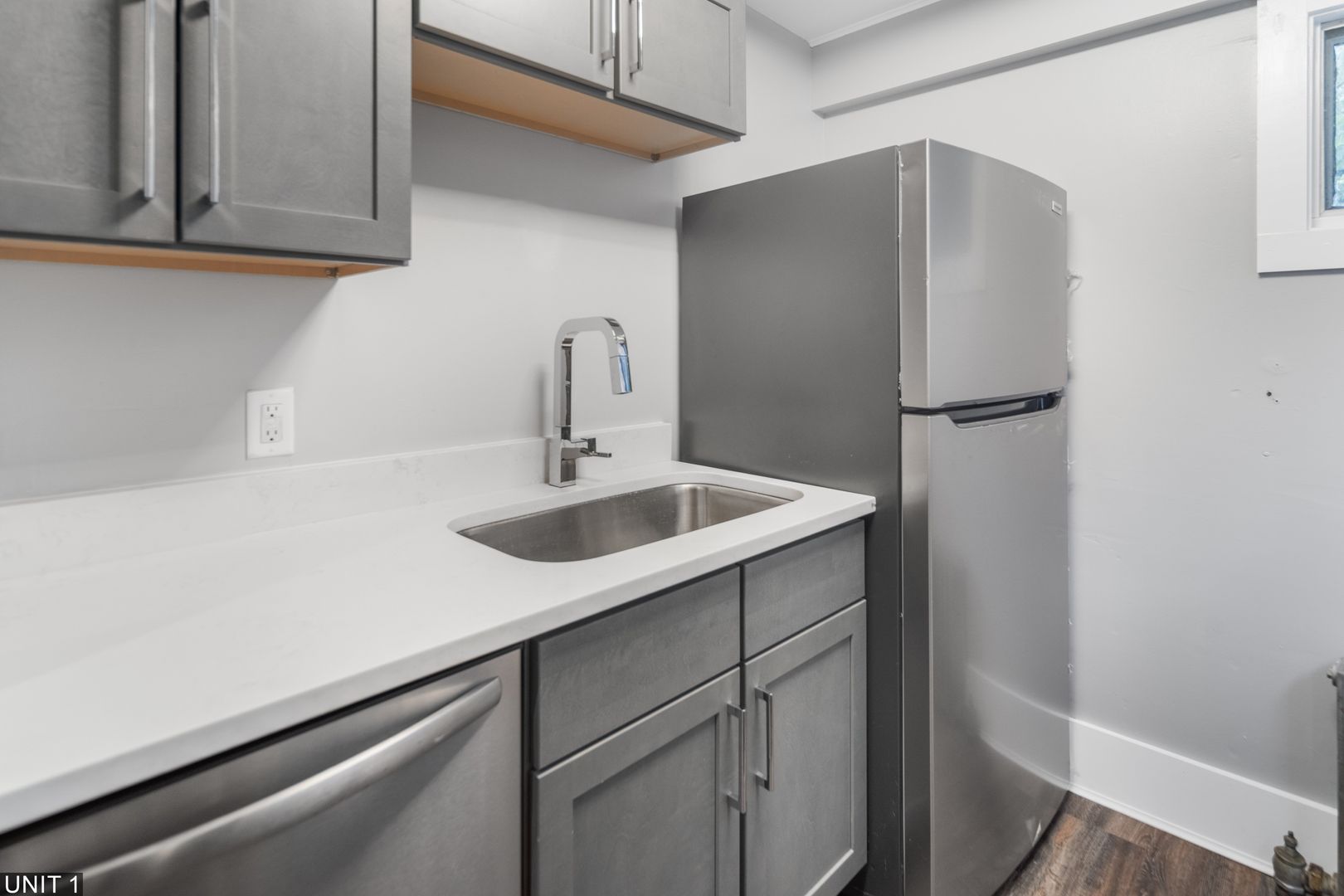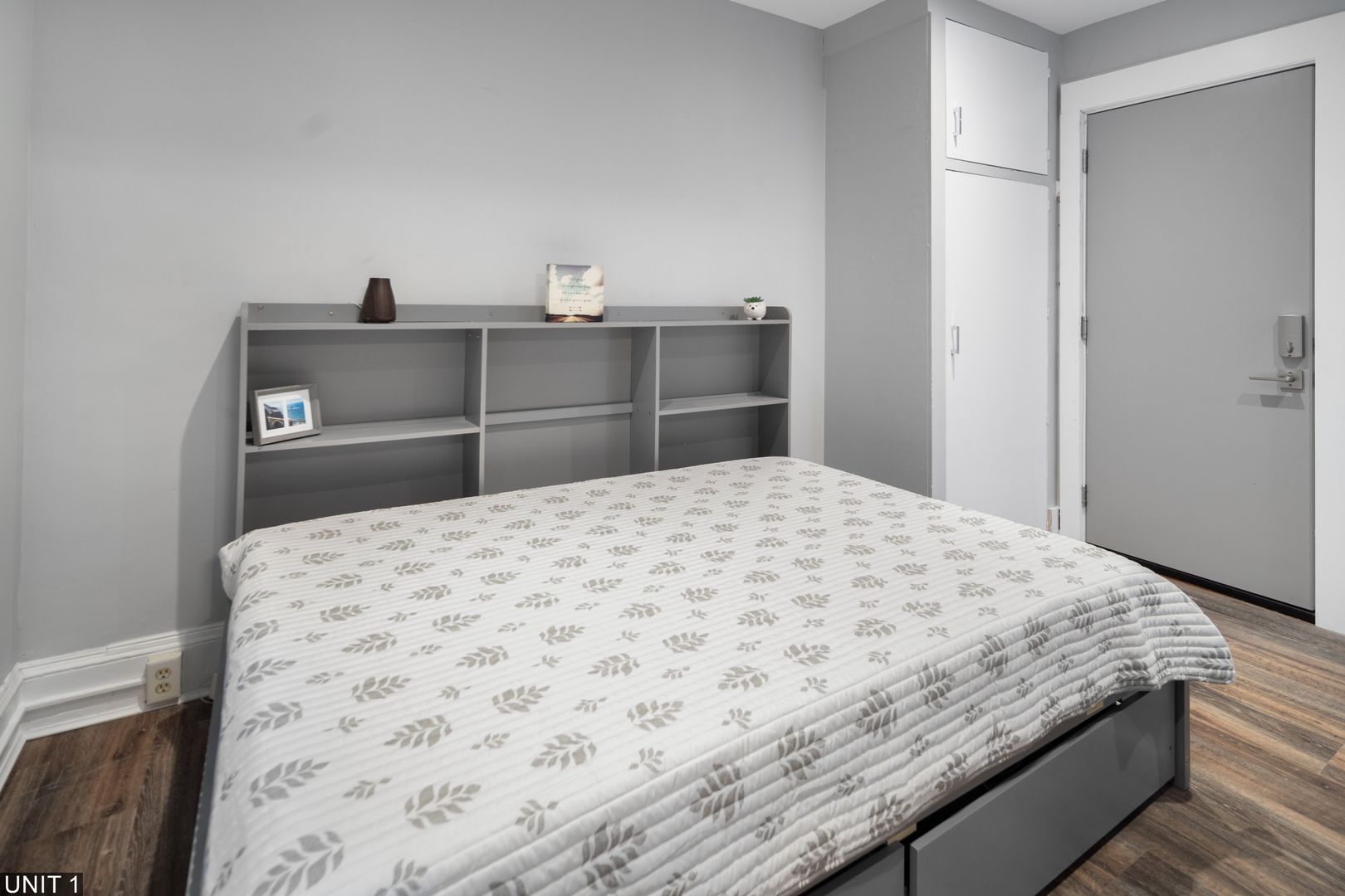 The studio features an open layout with bathroom and kitchenette, perfect for simple meals and study nights. All appliances and furnishings included. New laminate flooring, bluetooth mirror, body sprayers in custom tiled shower, stainless steel appliances, flat screen wall mounted tv.
