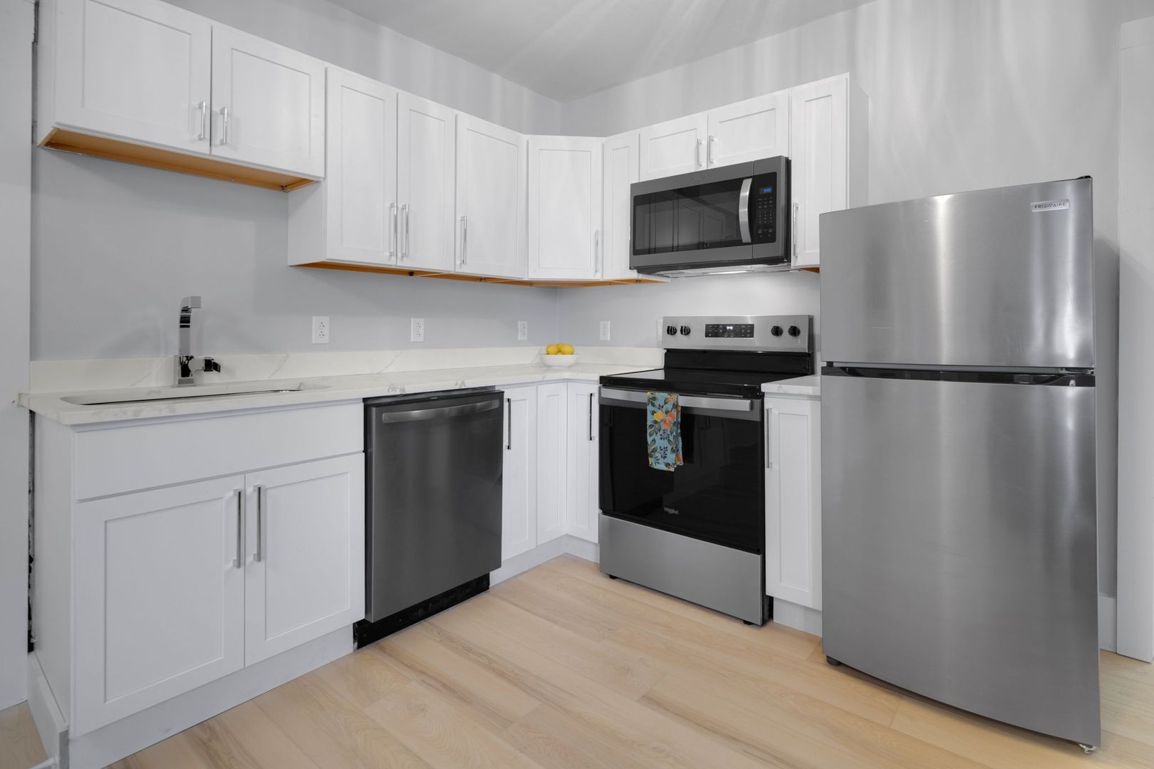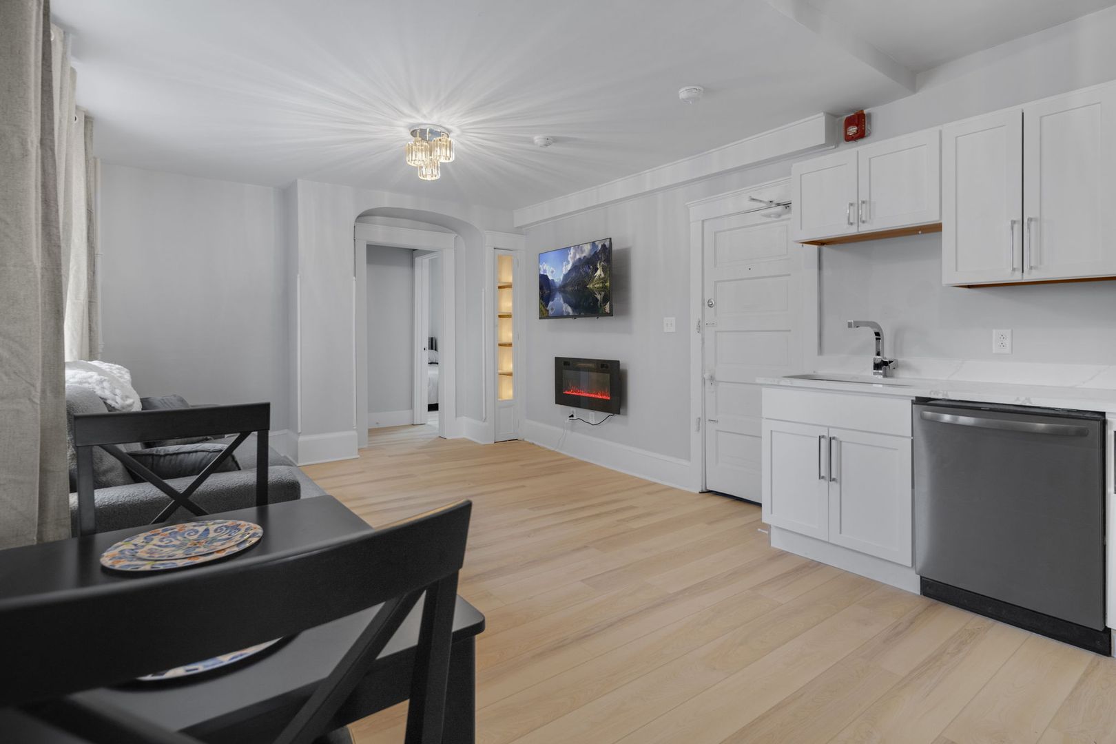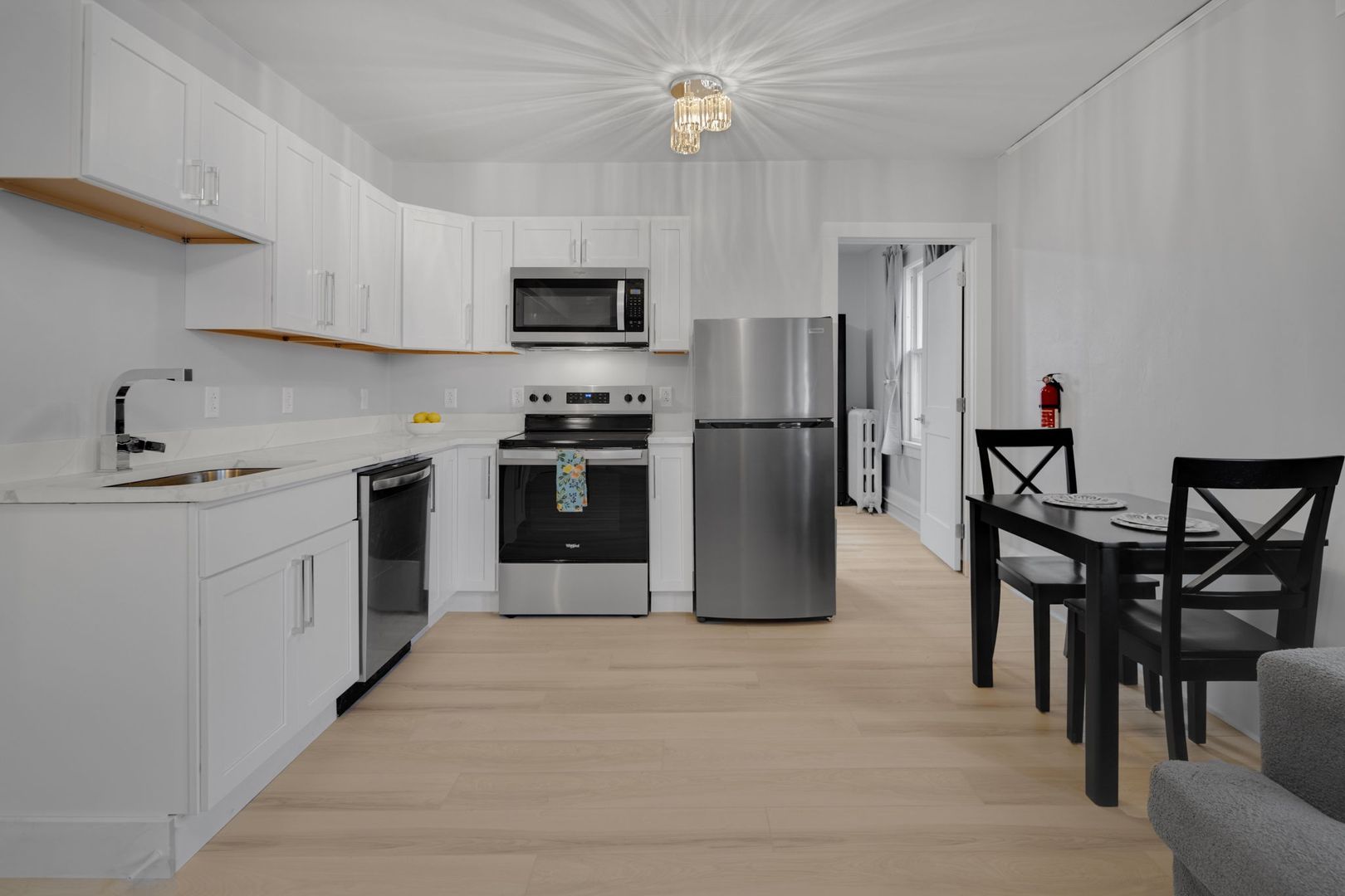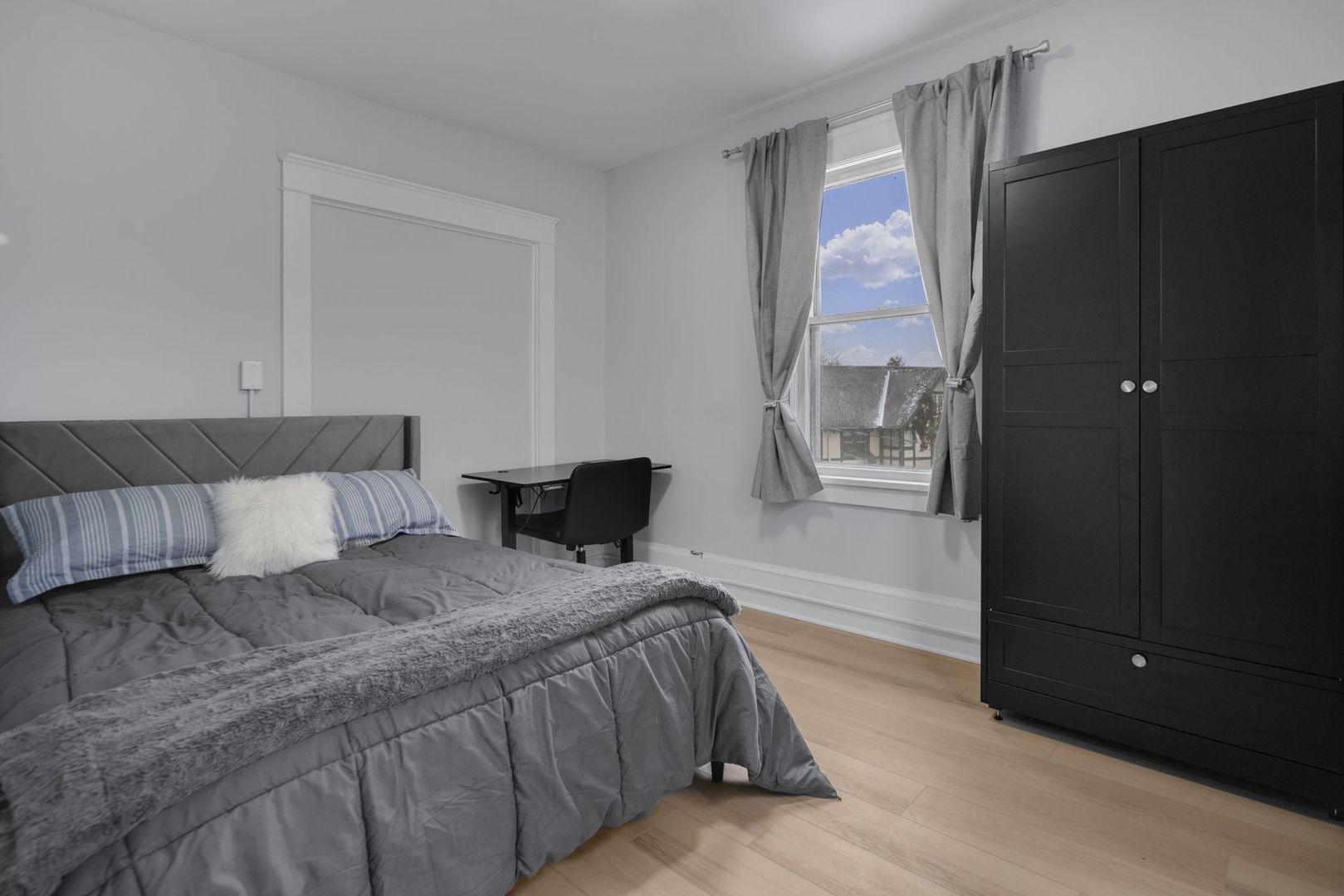 Each apartment comes fully furnished and features all new kitchens, upgraded bathrooms, new flooring and remodeled living and bedroom areas. Enjoy this home's classic charm blended with modern amenities like custom tile baths, LED vanity mirrors, smart lights and digital door access. The kitchens feature a full suite of new stainless steel appliances, wood cabinets, and quartz countertops. Common areas feature new furnishings including wall-mounted flat screen TVs and space for living and dining accordingly. Additional Furnishings include a couch, dining room table and chairs or kitchen counter seating, full size bed frame and mattress, desks and desk chair, and closet and dressers or large armoire in each bedroom.