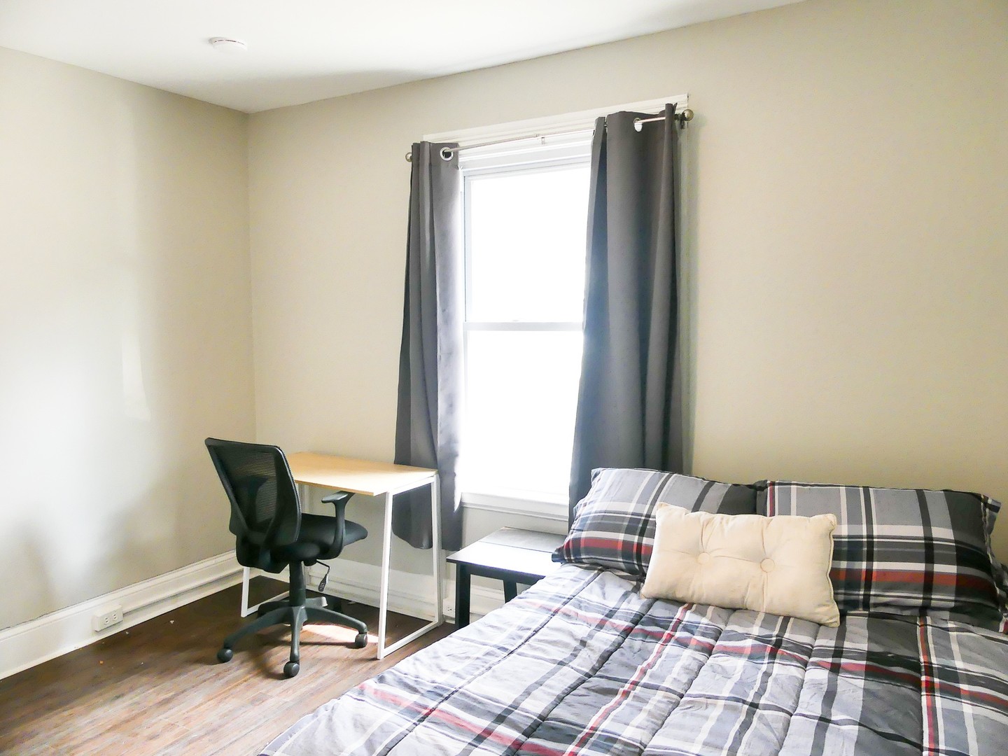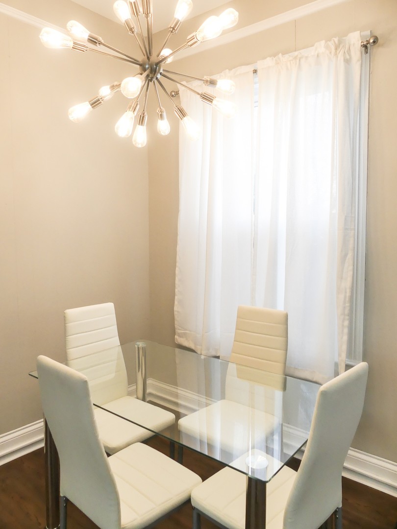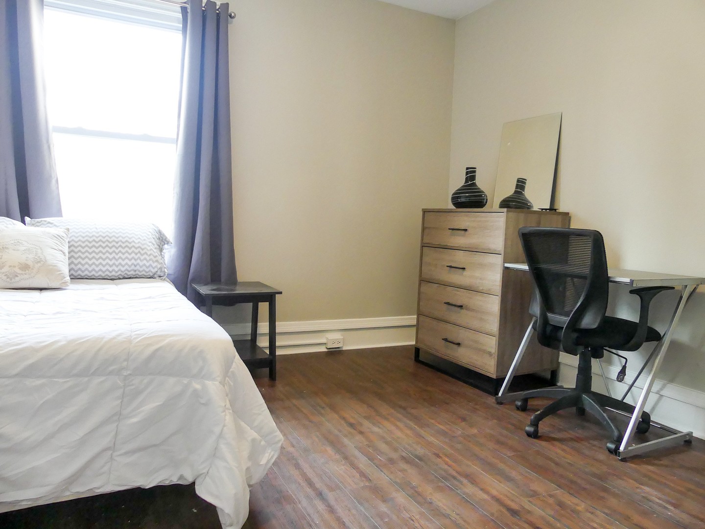 This apartment includes stainless steel appliances, granite counter tops and granite counter top breakfast bar, LED lighting, four large bedrooms and ample closet space. The apartment has its own dining space with a dining table the dining area enters into a large living area space with a mantle and electric fire place. This unit has two full bathrooms with tile flooring. The unit is equipped with its own washer and dryer, and fully furnished with a couch, dining table, beds, dressers, desks and desk chairs. Window treatments also provided at no additional cost.