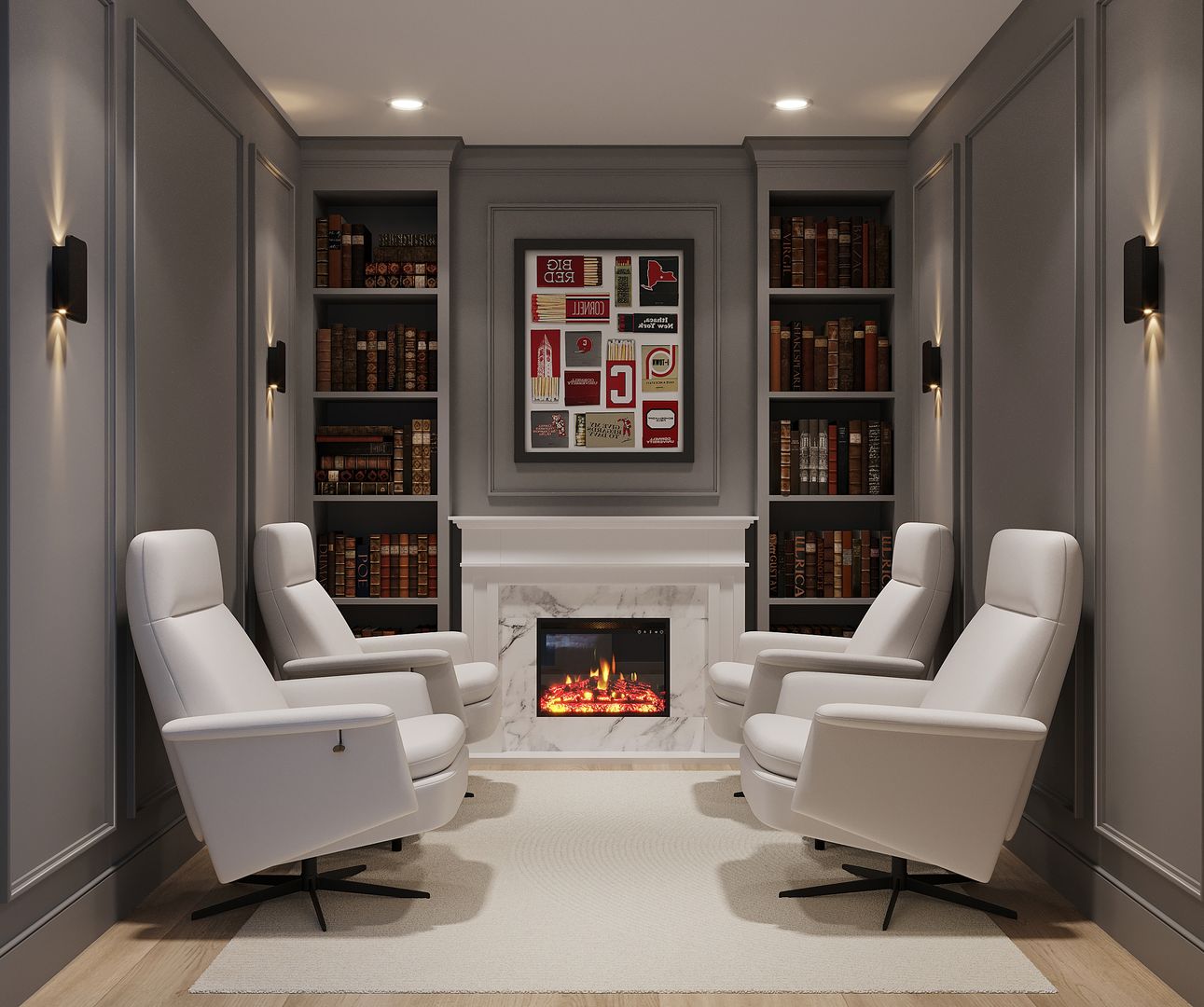 A sleek ambient LED fireplace and wall-mounted smart TV—perfect for relaxing nights in