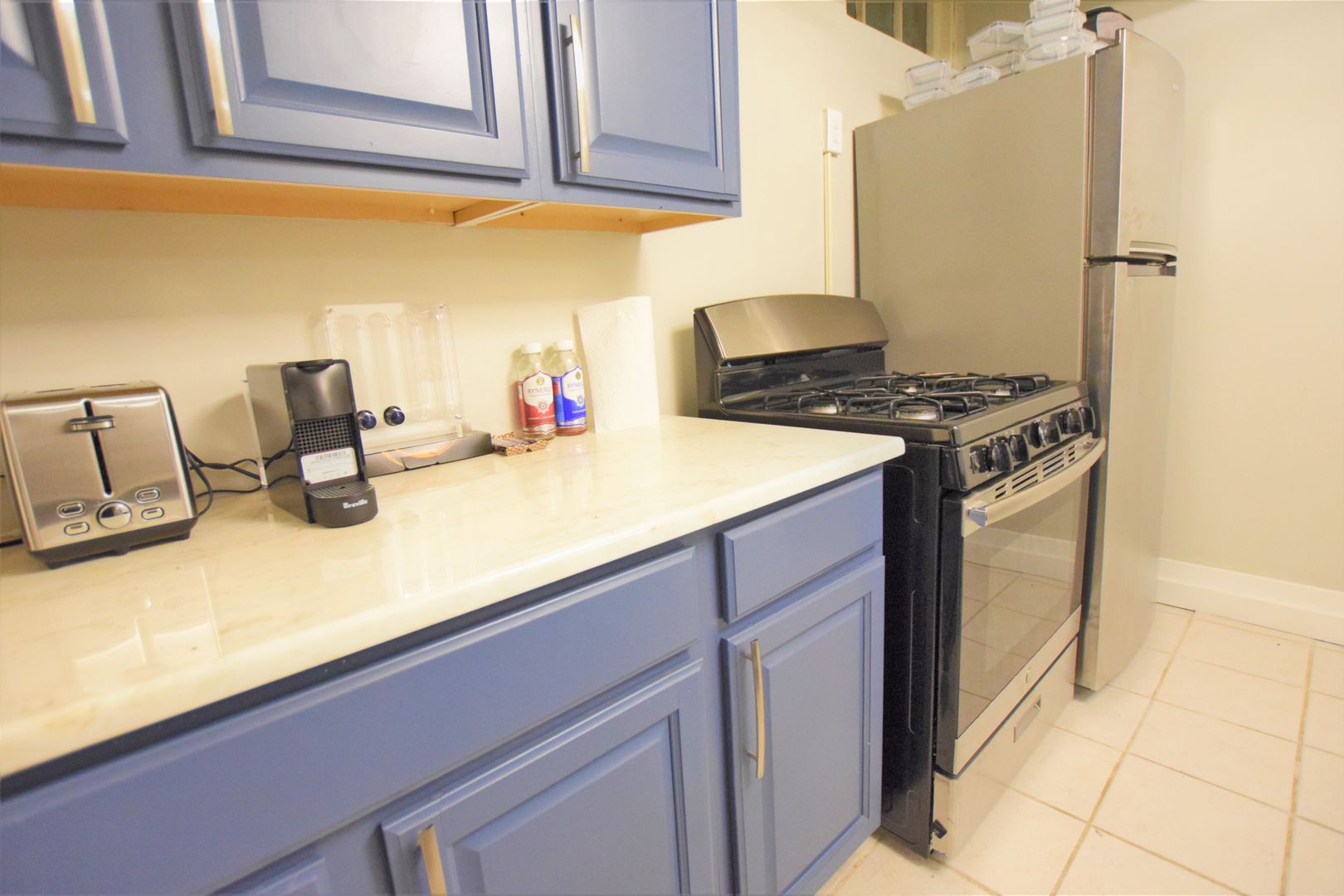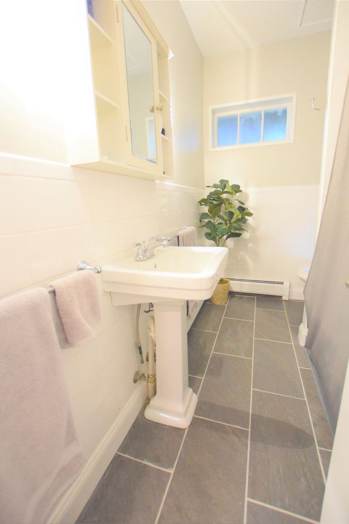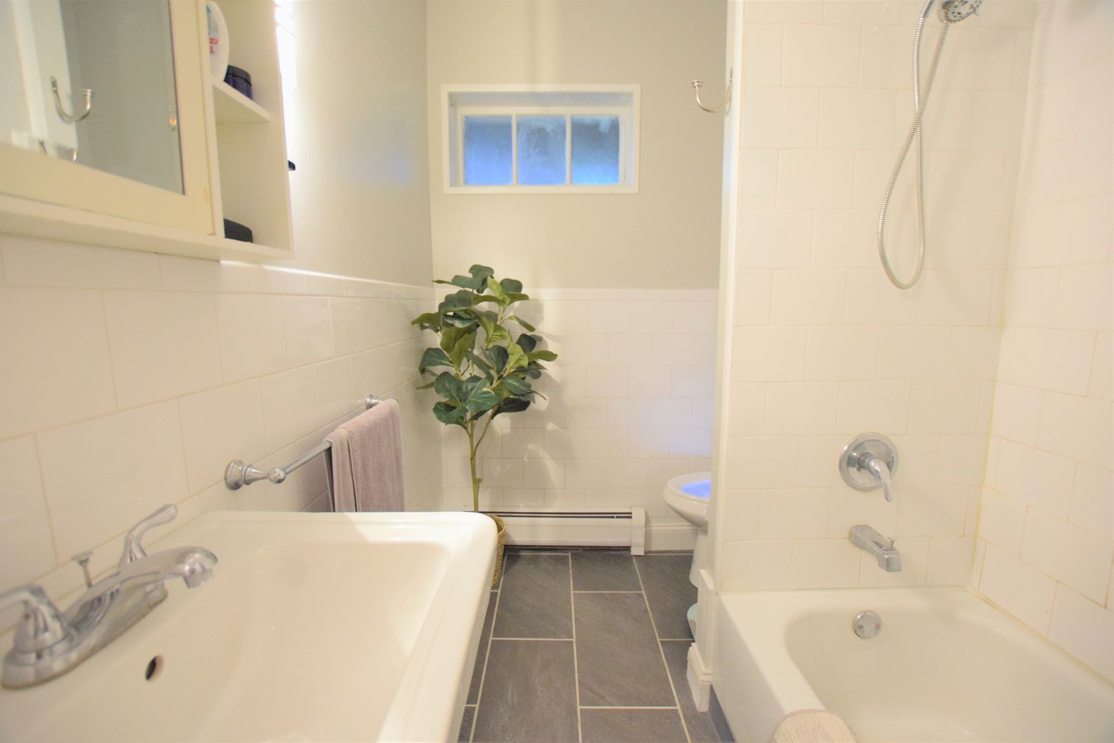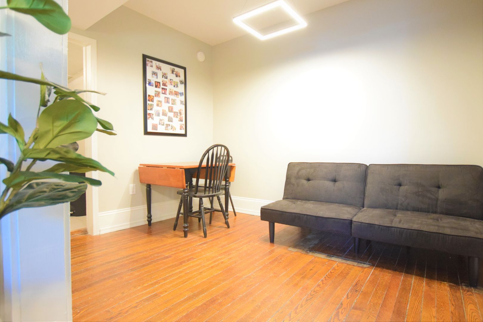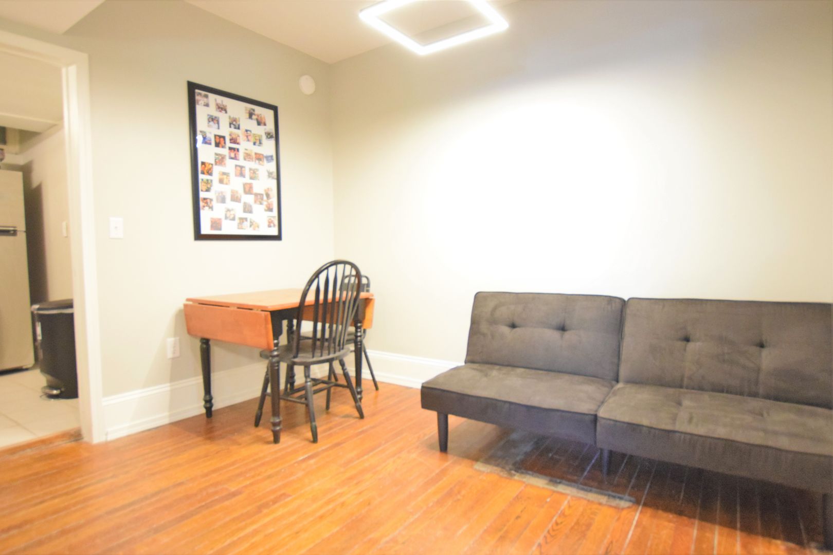 This recently renovated 1 bedroom apartment has a large open floor plan connecting the kitchen and living room. Enjoy modern touches like LVT flooring, granite countertops, and brand new light fixtures and stainless steel appliances. The bathroom is bright and beautifully tiled with a large shower and tub. There is private in-unit laundry and a large storage room adjoining the kitchen.