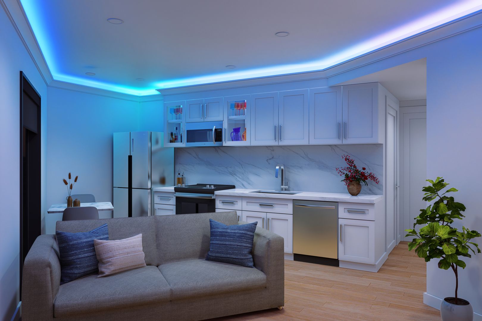 Inside, you’ll find details that make a difference day to day. The living area features an ambient LED fireplace and mounted smart TV, while the kitchen is finished with stainless steel appliances and quartz countertops, giving it a clean, modern look. The bathrooms carry that same style, with glass showers, LED mirrors, and updated finishes. Select units also include Juliet balconies with views of Cascadilla Gorge and Collegetown.